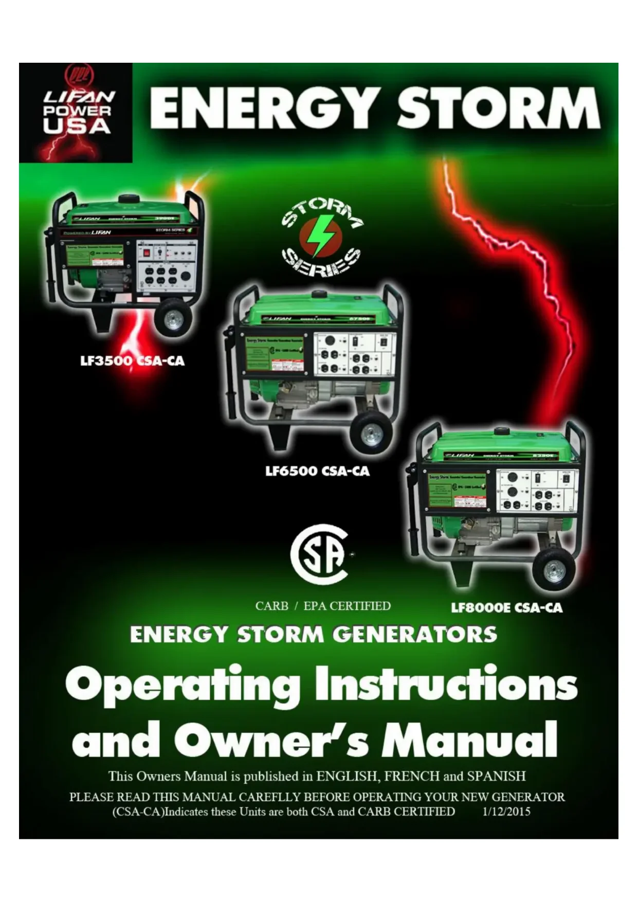 MODE D'EMPLOI Energy Storm 8000E Lifan