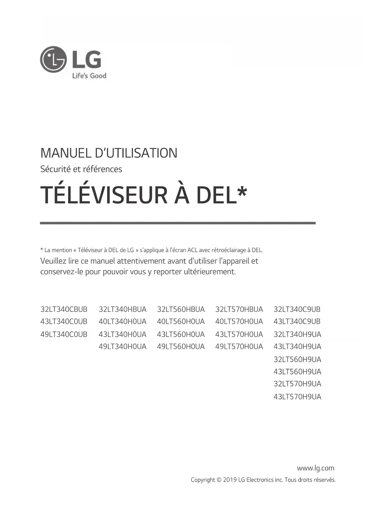 Retrouvez gratuitement la notice de l'appareil 43LT570H LG au format PDF.