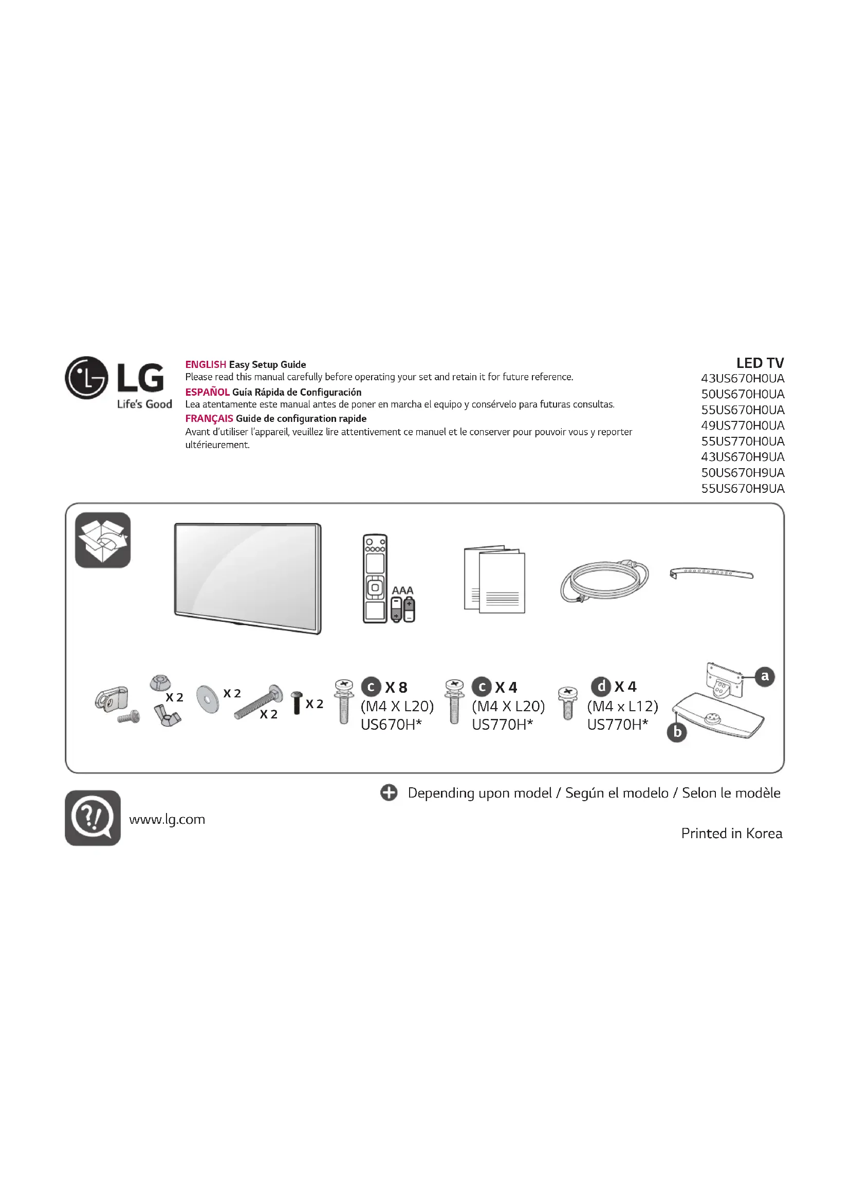Retrouvez gratuitement la notice de l'appareil 43US670H LG au format PDF.
