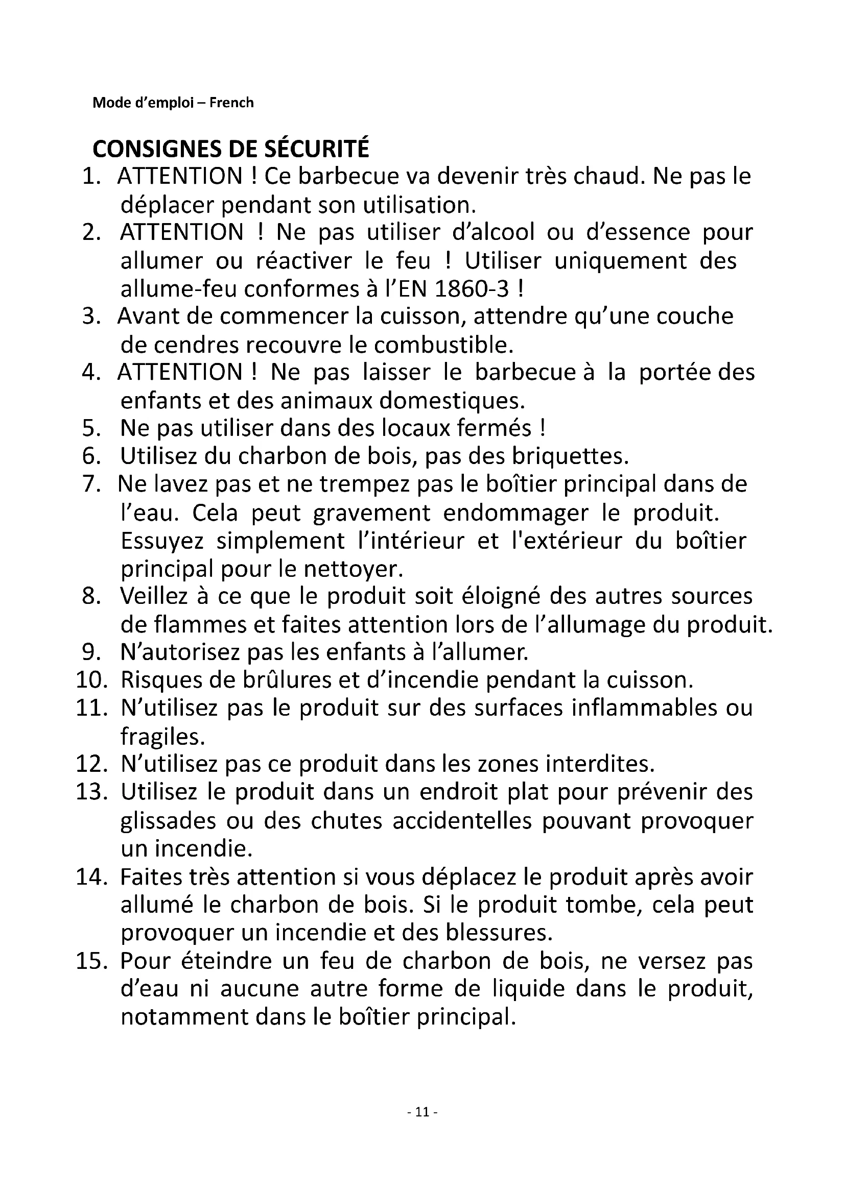 1. ATTENTION ! Ce barbecue va devenir très chaud. Ne pas le