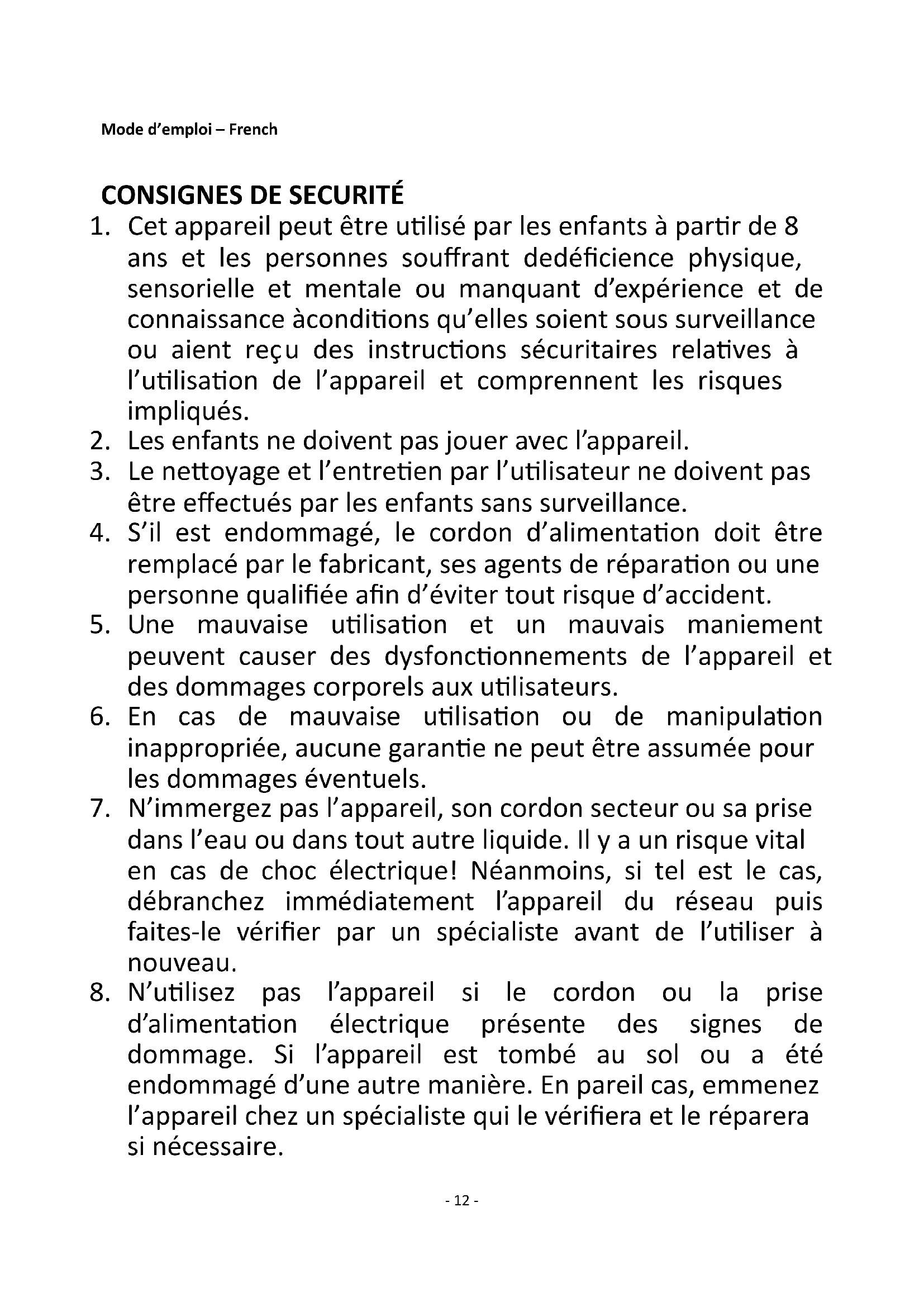 2. Les enfants ne doivent pas jouer avec l’appareil.