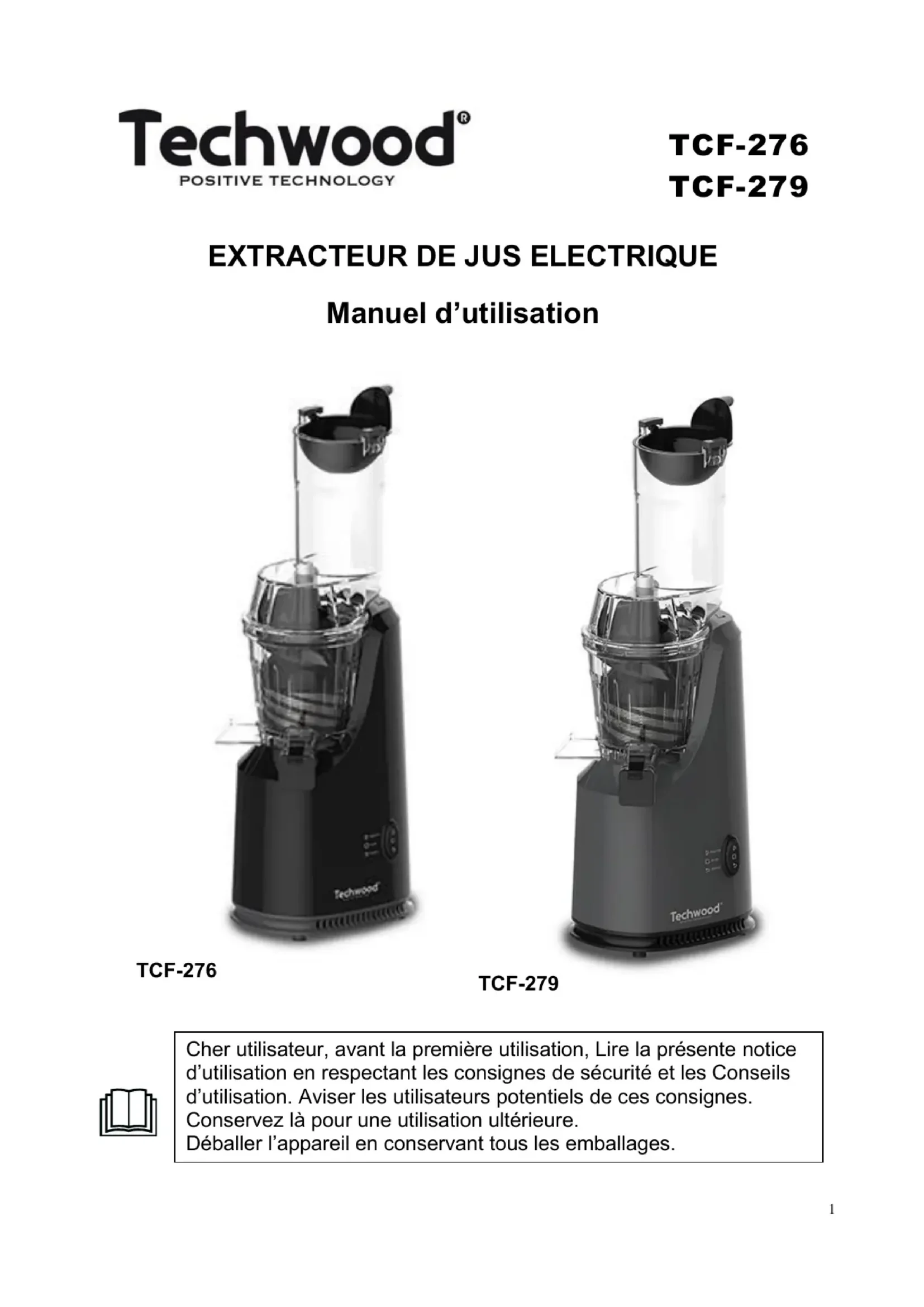 TCF279 - Extracteur de jus TECHWOOD - Notice d'utilisation et mode d'emploi gratuit