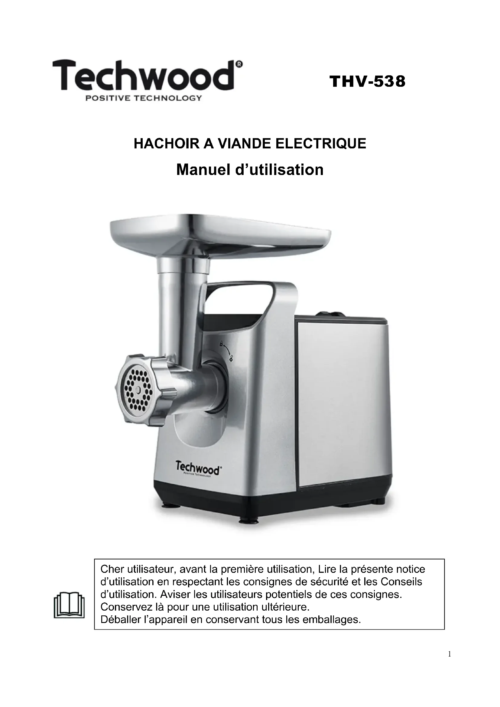 THV538 - Hachoir TECHWOOD - Notice d'utilisation et mode d'emploi gratuit