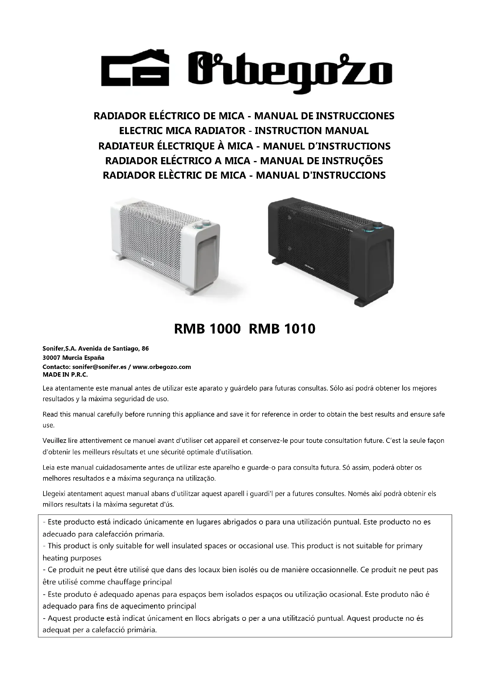 RMB 1010 - Chauffage Orbegozo - Notice d'utilisation et mode d'emploi gratuit