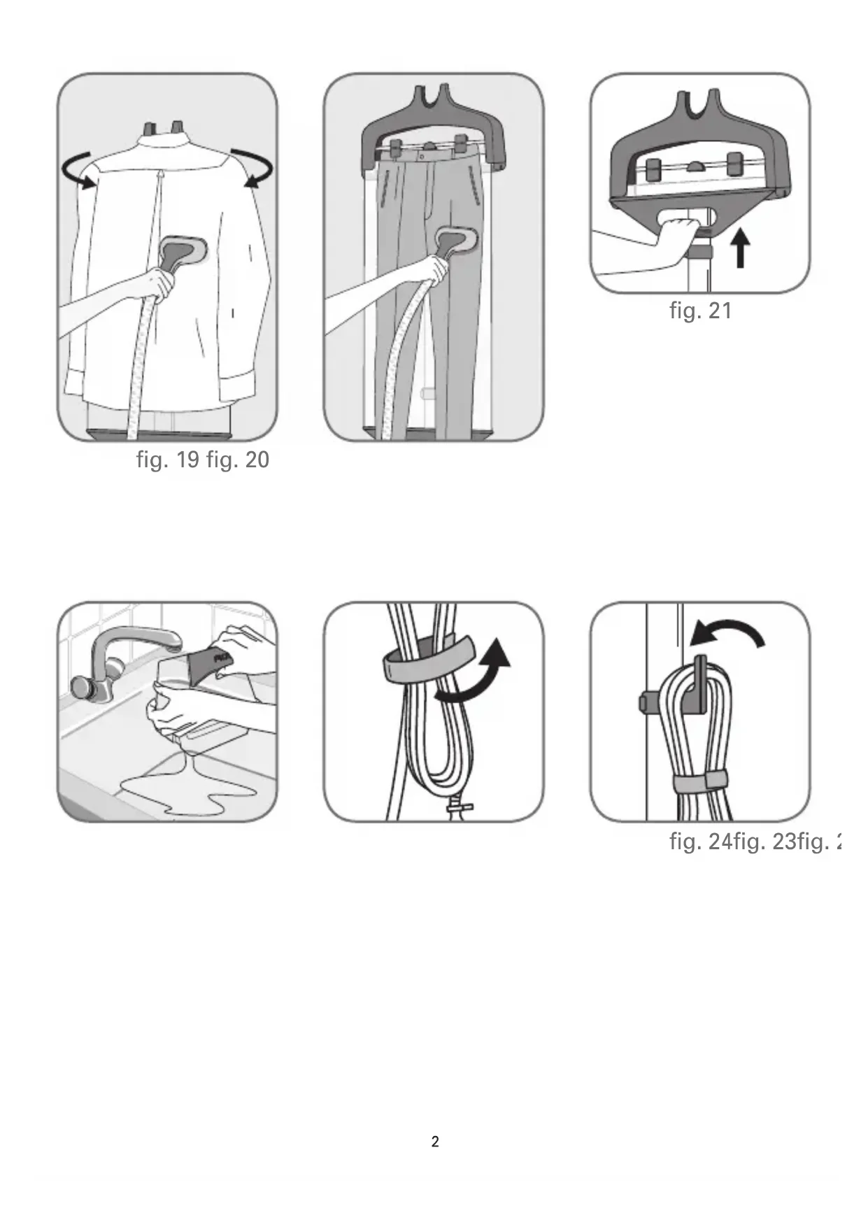 - Suspendez le vêtement sur le cintre intégré ou sur un autre cintre que vous pouvez suspendre à l’accroche cintre situé sur la tige du cintre (fig 18-19).