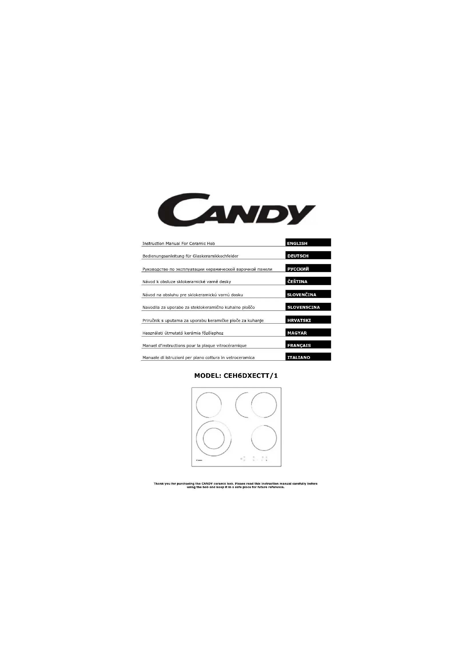 Retrouvez gratuitement la notice de l'appareil CEH6DXECTT1 CANDY au format PDF.