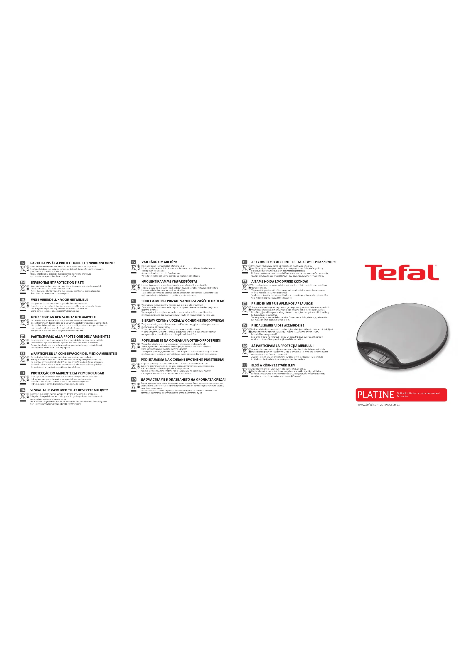 Platine BC1500 - Balances de cuisine TEFAL - Notice d'utilisation et mode d'emploi gratuit