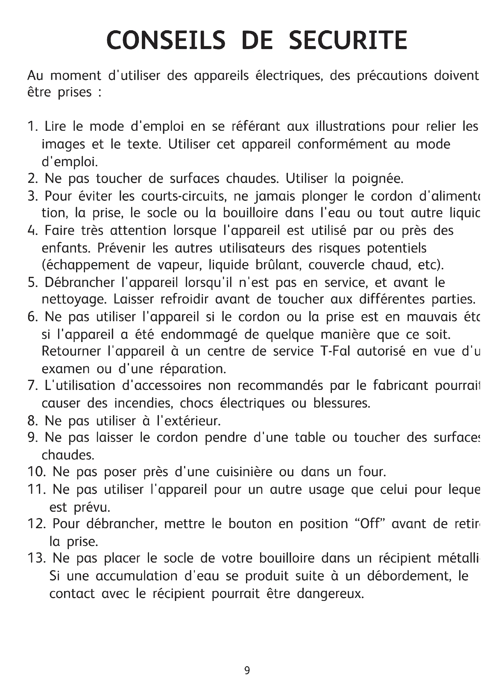 NOTICE BOUILLOIRE USA.qxp:bouilloire 1.qxp 5/07/07 8:48 Page 1011 Consignes de sécurité Merci d’avoir acheté une bouilloire T-Fal. Lire attentivement les instructions communes à tous nos modèles et les garder à portée de main.