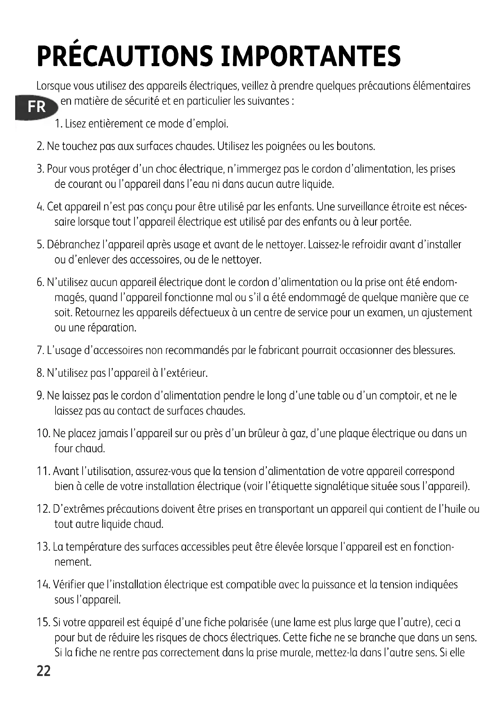 saire lorsque tout l’appareil électrique est utilisé par des enfants ou à leur portée.