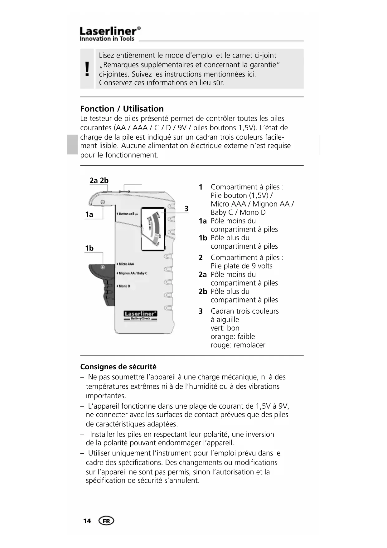 MODE D'EMPLOI BatteryCheck Laserliner