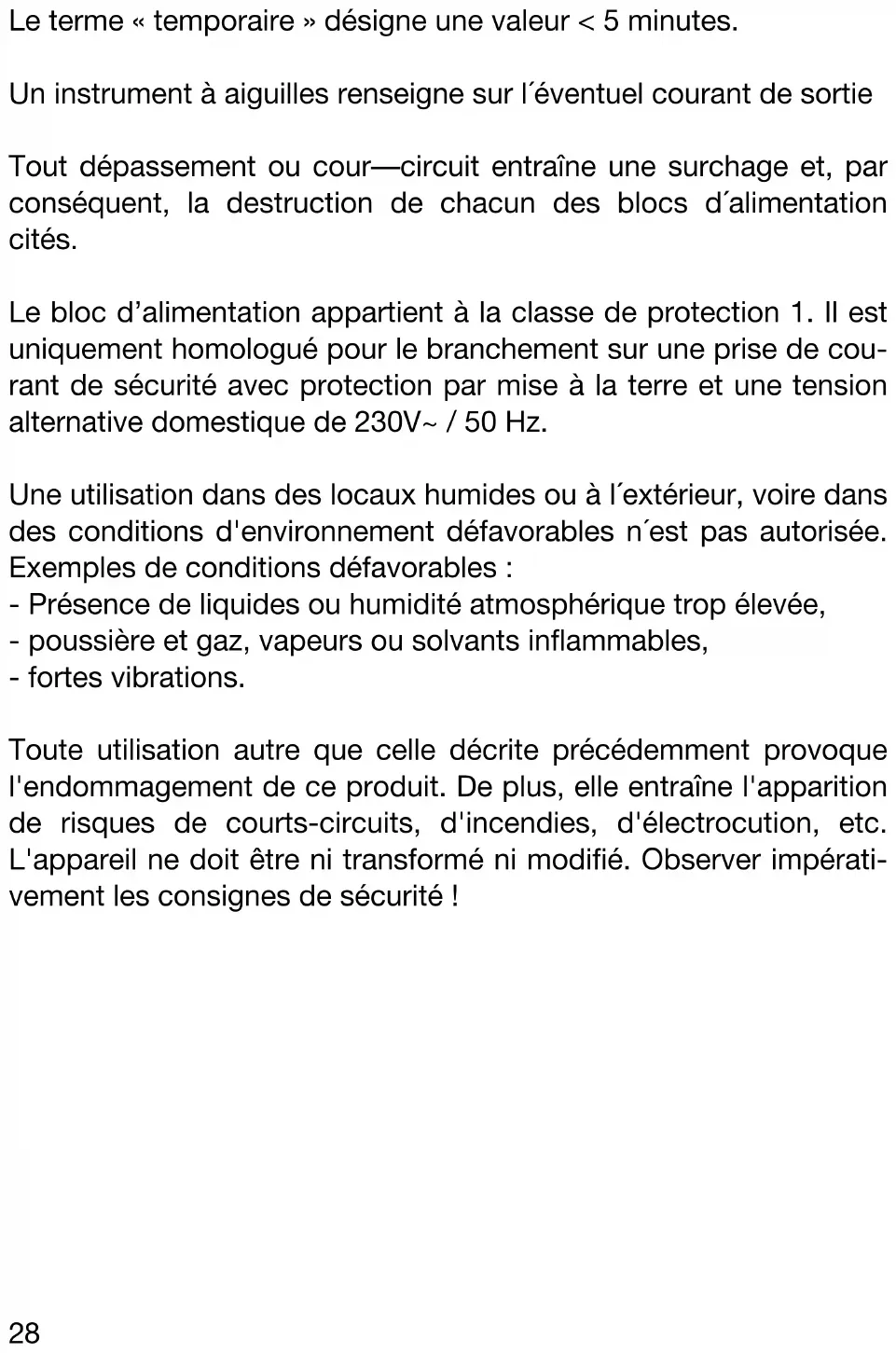 - Les blocs d’alimentation ne sont pas agréés pour l’application aux hommes et animaux.