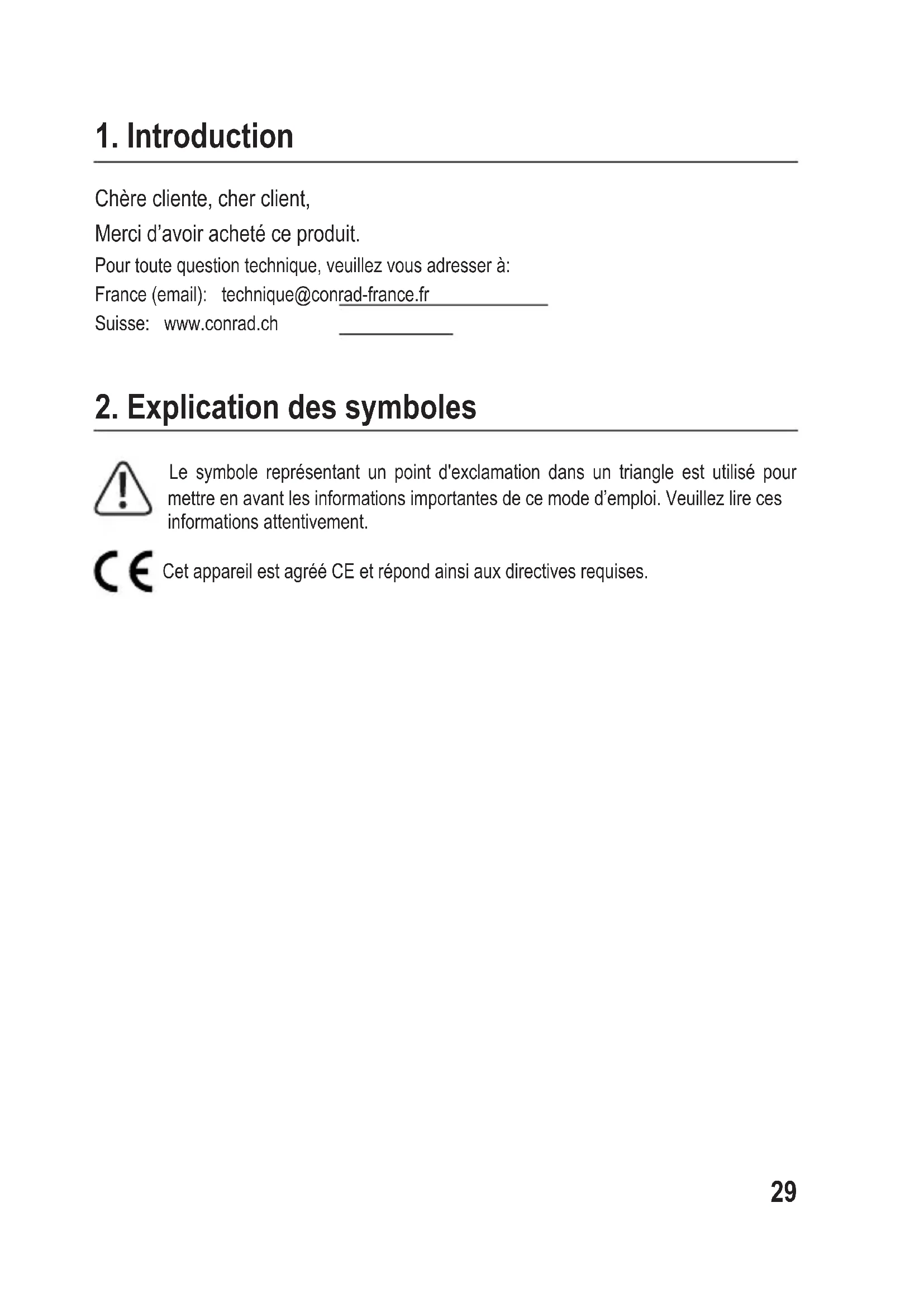 Chèrecliente,cherclient, Mercid’avoirachetéceproduit. Pourtoutequestiontechnique,veuillezvousadresserà: France(email): technique@conrad-france.fr Suisse: www.conrad.ch