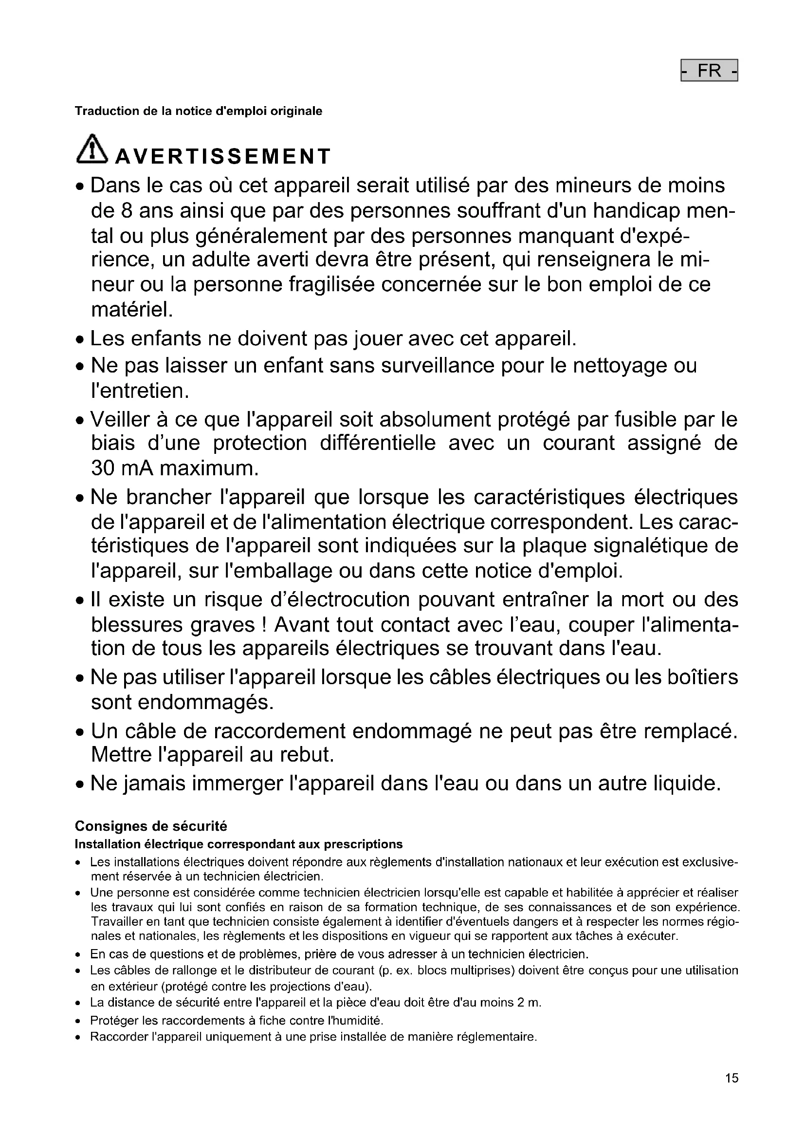 - FR - Traduction de la notice d'emploi originale AVERTISSEMENT