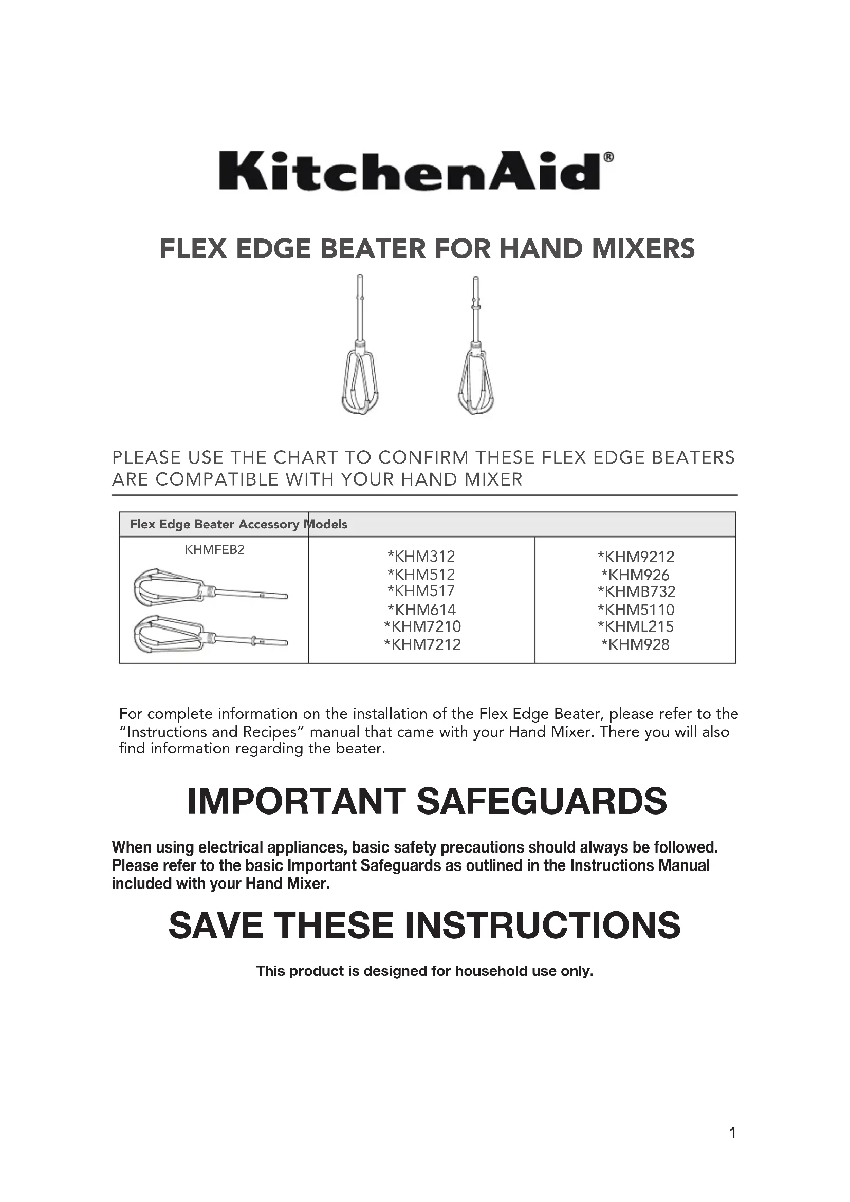 Ce produit est conçu uniquement pour un usage domestique.Fouet Flex Edge ModèlesKHMFEB2 *KHM312 *KHM512 *KHM517 *KHM614 *KHM7210 *KHM7212 *KHM9212 *KHM926 *KHMB732 *KHM5110 *KHML215 *KHM928 Pour des renseignements complets sur l’utilisation du Fouet Flex Edge, consulter le livret «Instructions et recettes» fourni avec le batteur à main. Il est aussi possible de trouver des informations concernant le fouet là.4 ®/™ ©2021 KitchenAid. Tous droits réservés. Utilisé sous licence au Canada.