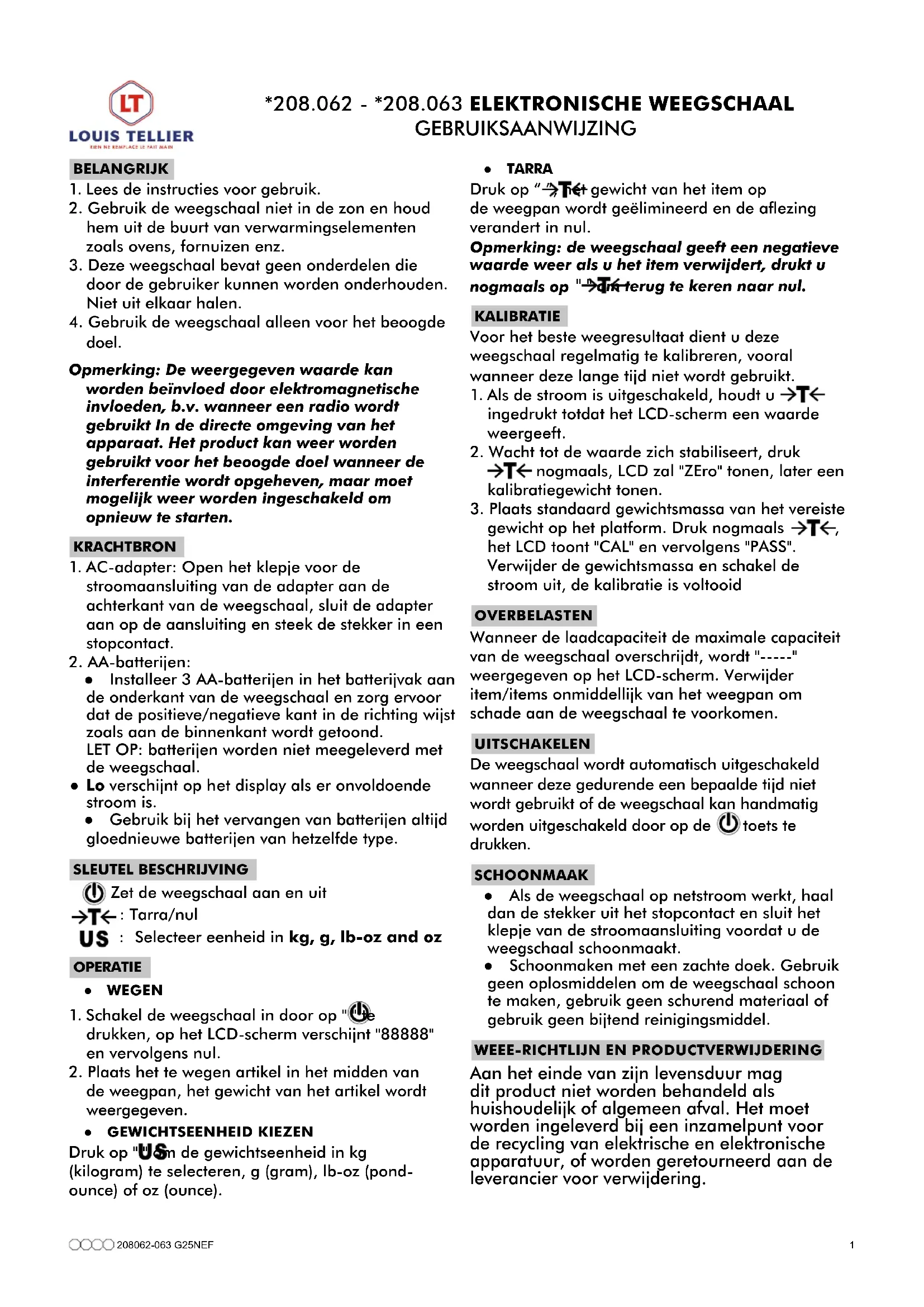 Téléchargez la notice de votre Balance au format PDF gratuitement ! Retrouvez votre notice 208063 - Louis Tellier et reprennez votre appareil électronique en main. Sur cette page sont publiés tous les documents nécessaires à l'utilisation de votre appareil 208063 de la marque Louis Tellier.