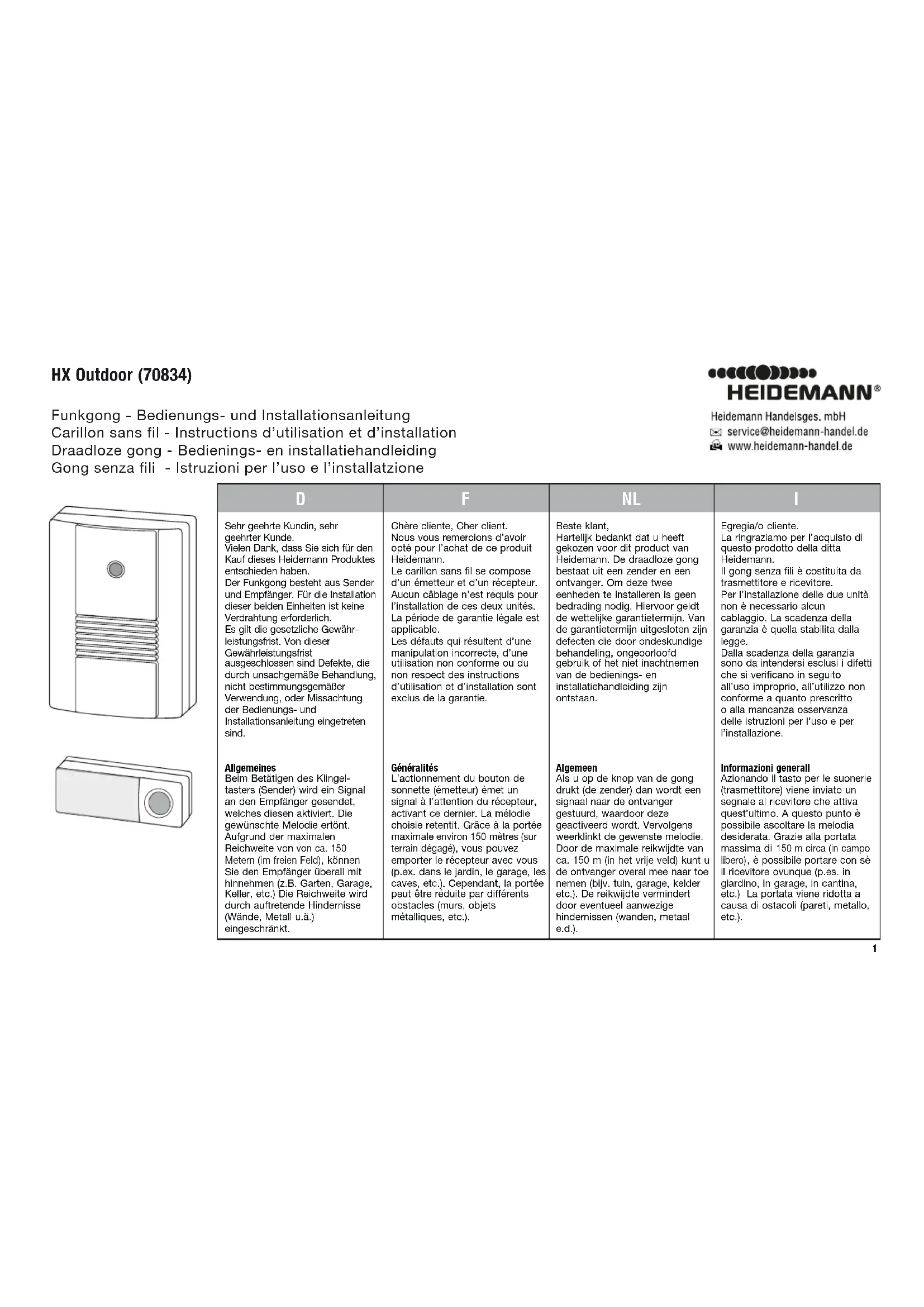 70834 - Sonnette de portes Heidemann - Notice d'utilisation et mode d'emploi gratuit