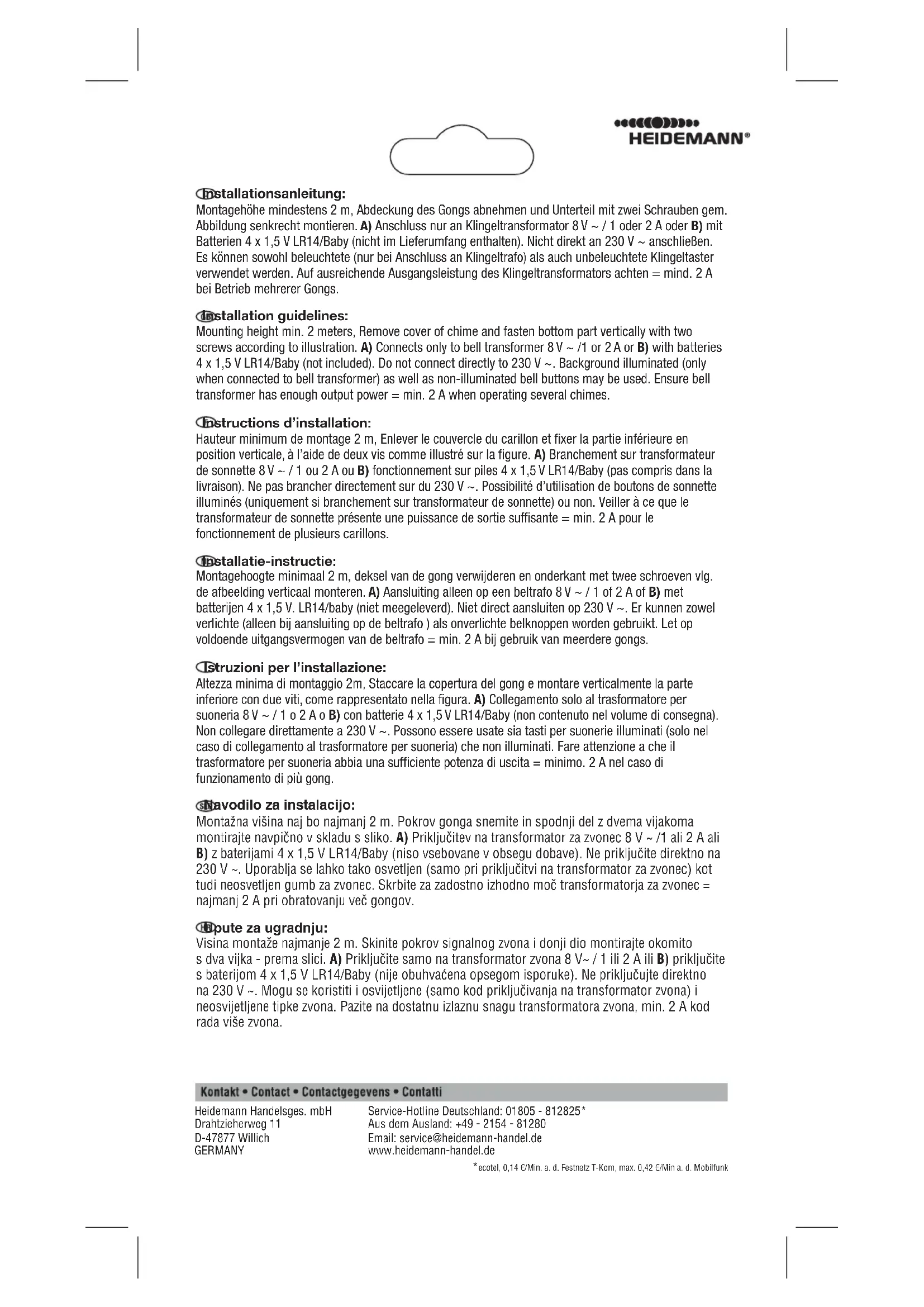 70161 - Sonnette de portes Heidemann - Notice d'utilisation et mode d'emploi gratuit
