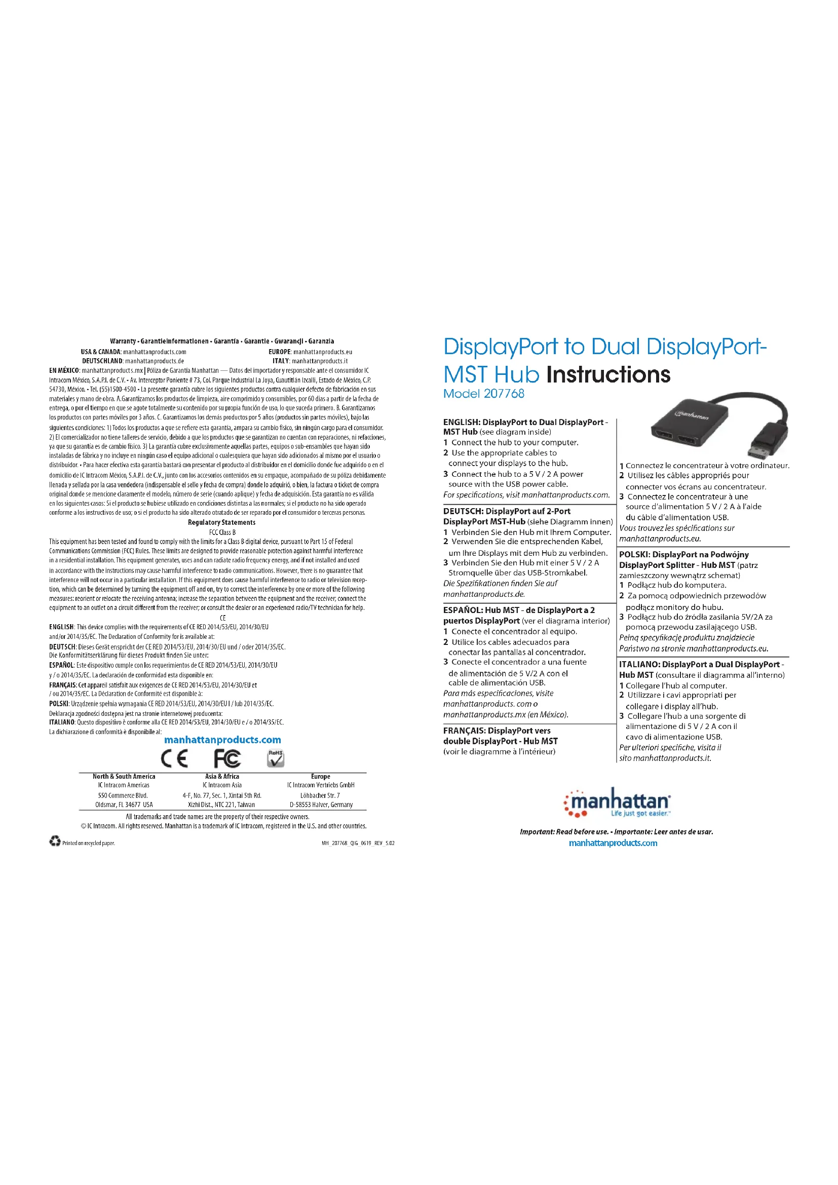 Téléchargez la notice de votre Accessoire informatique au format PDF gratuitement ! Retrouvez votre notice 207768 - MANHATTAN et reprennez votre appareil électronique en main. Sur cette page sont publiés tous les documents nécessaires à l'utilisation de votre appareil 207768 de la marque MANHATTAN.