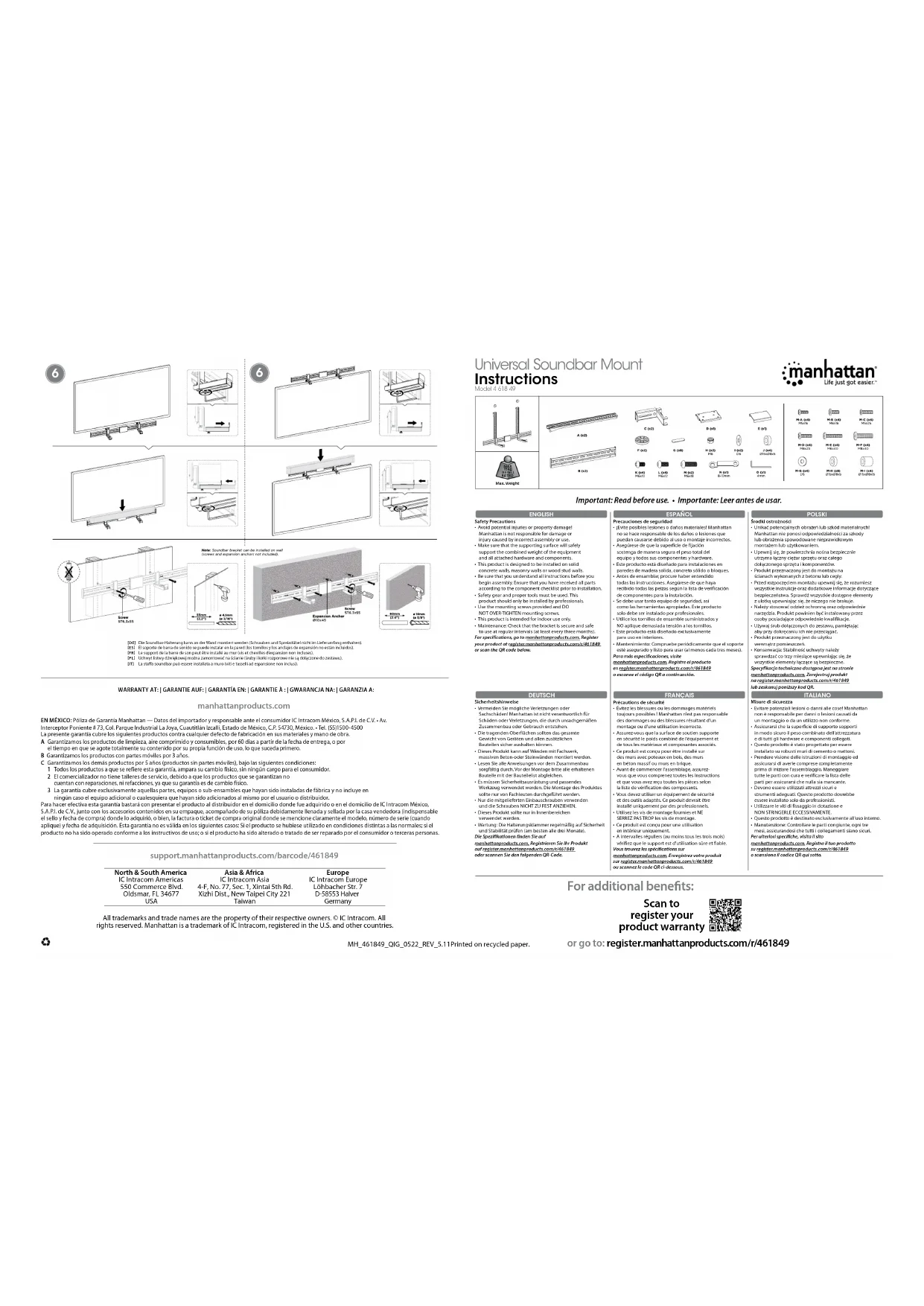 - A intervalles réguliers (au moins tous les trois mois) vérifiez que le support est d’utilisation sûre et fiable. Vous trouvez les spécifications sur manhattanproducts.com. Enregistrez votre produit sur register.manhattanproducts.com/r/461849 ou scannez le code QR ci-dessous. POLSKI Środki ostrożności