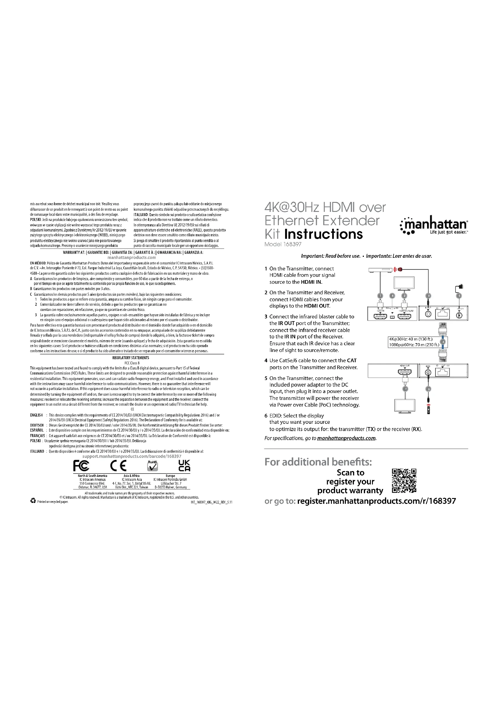 168397 - Extendeur HDMI MANHATTAN - Notice d'utilisation et mode d'emploi gratuit