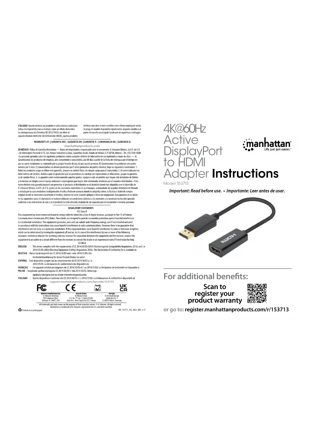 Retrouvez gratuitement la notice de l'appareil 153713 MANHATTAN au format PDF.