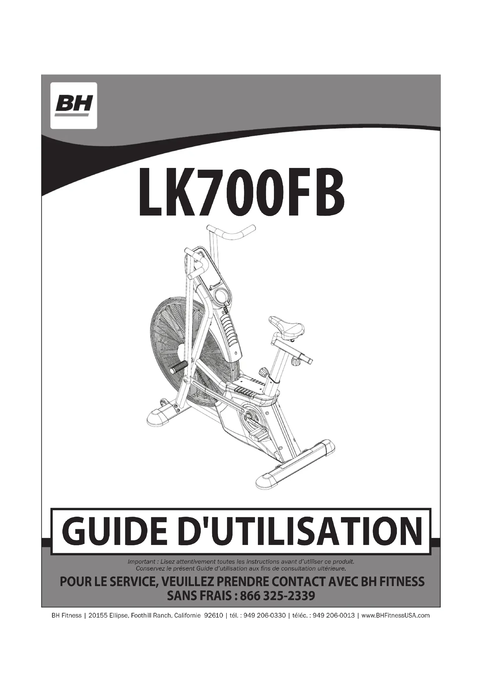 Important : Lisez attentivement toutes les instructions avant d’utiliser ce produit. Conservez le présent Guide d’utilisation aux ns de consultation ultérieure. BH Fitness | 20155 Ellipse, Foothill Ranch, Californie 92610 | tél. : 949 206-0330 | téléc. : 949 206-0013 | www.BHFitnessUSA.com33 LK700FB Important : Lisez attentivement toutes les instructions avant d’utiliser ce produit. Conservez le présent Guide d’utilisation aux ns de consultation ultérieure. BH Fitness | 20155 Ellipse, Foothill Ranch, Californie 92610 | tél. : 949 206-0330 | téléc. : 949 206-0013 | www.BHFitnessUSA.com