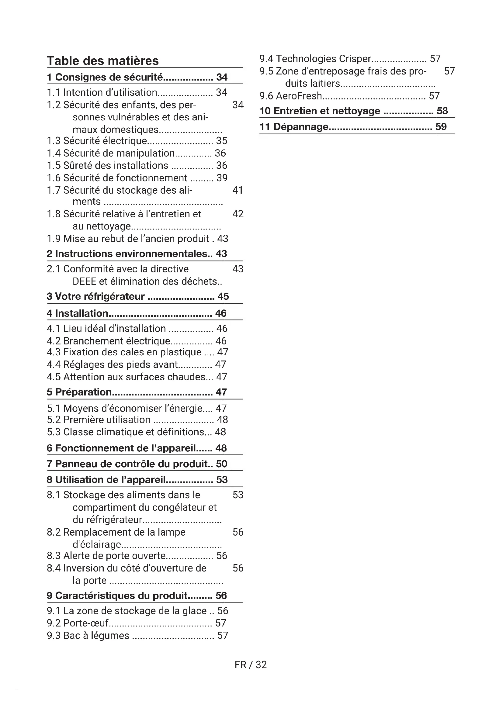 3 Votre réfrigérateur ........................ 45 4 Installation..................................... 46