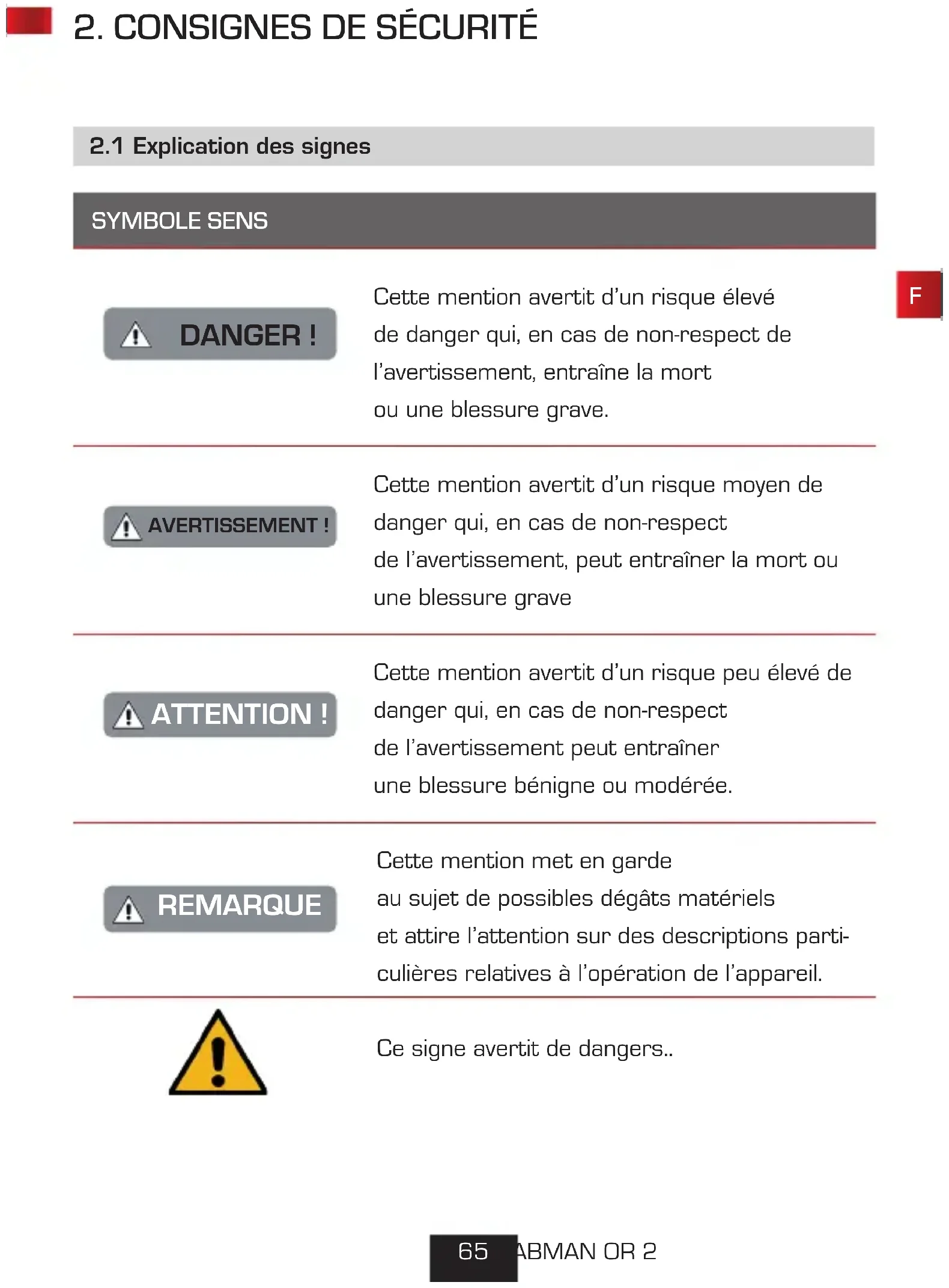 2. CONSIGNES DE SÉCURITÉF