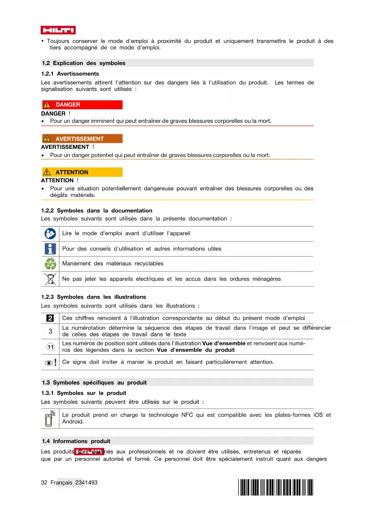 1.3 Symboles spécifiques au produit
