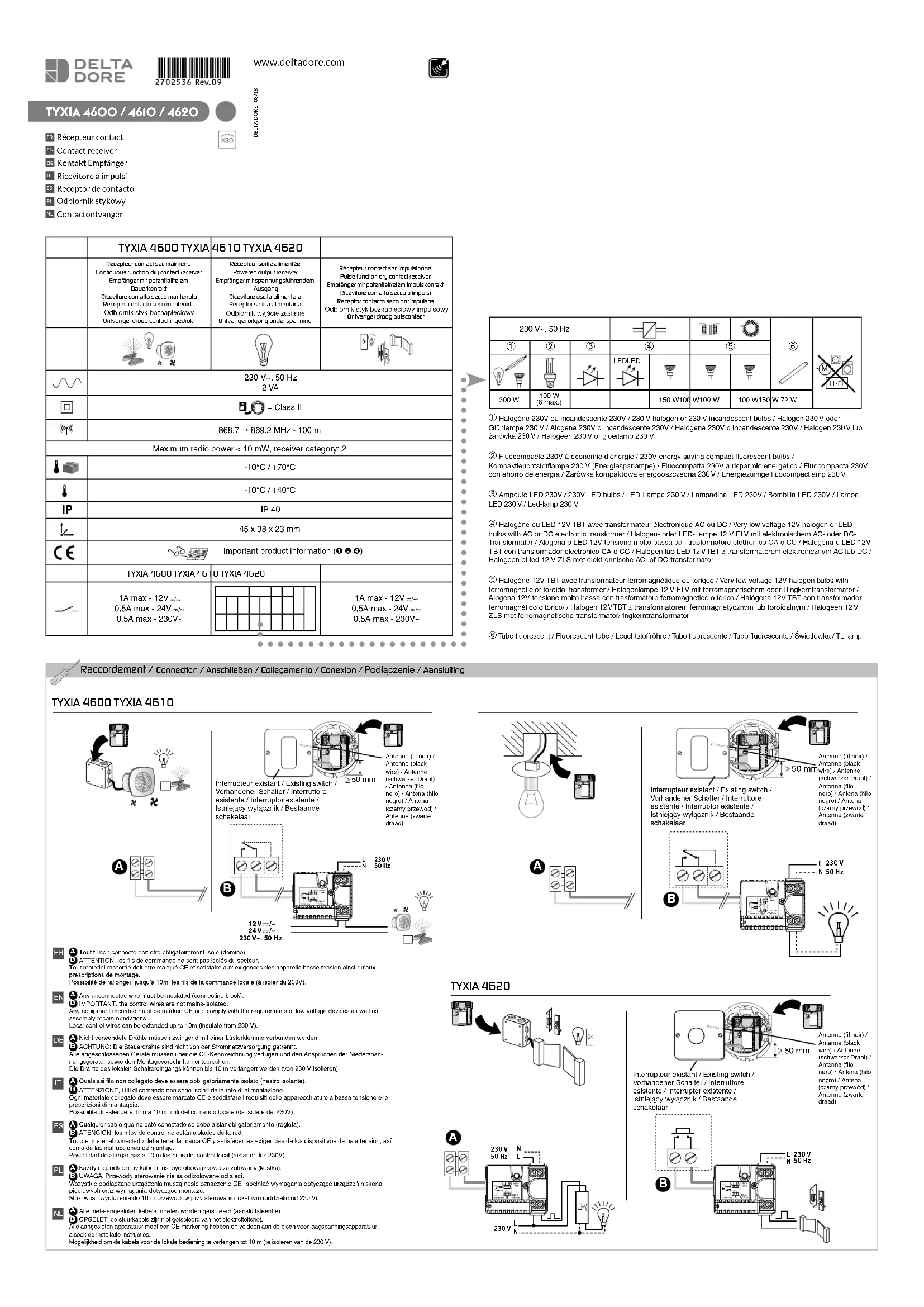 Téléchargez la notice de votre Recepteur au format PDF gratuitement ! Retrouvez votre notice Tyxia 4600 - DELTA DORE et reprennez votre appareil électronique en main. Sur cette page sont publiés tous les documents nécessaires à l'utilisation de votre appareil Tyxia 4600 de la marque DELTA DORE.