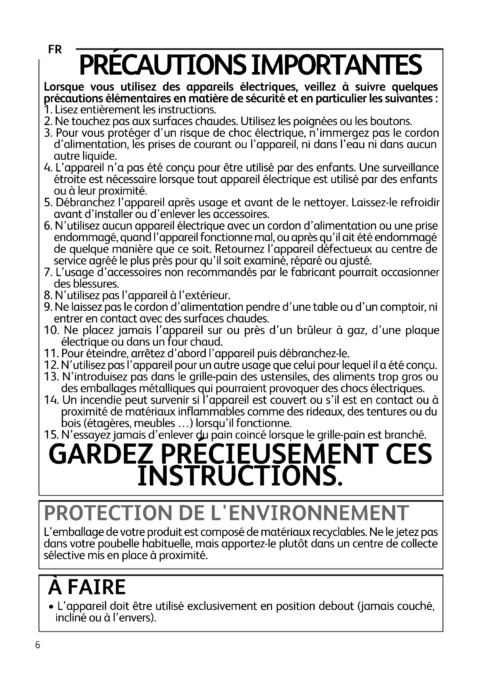 - Ne couvrez pas les fentes du grille-pain pendant qu’il fonctionne.