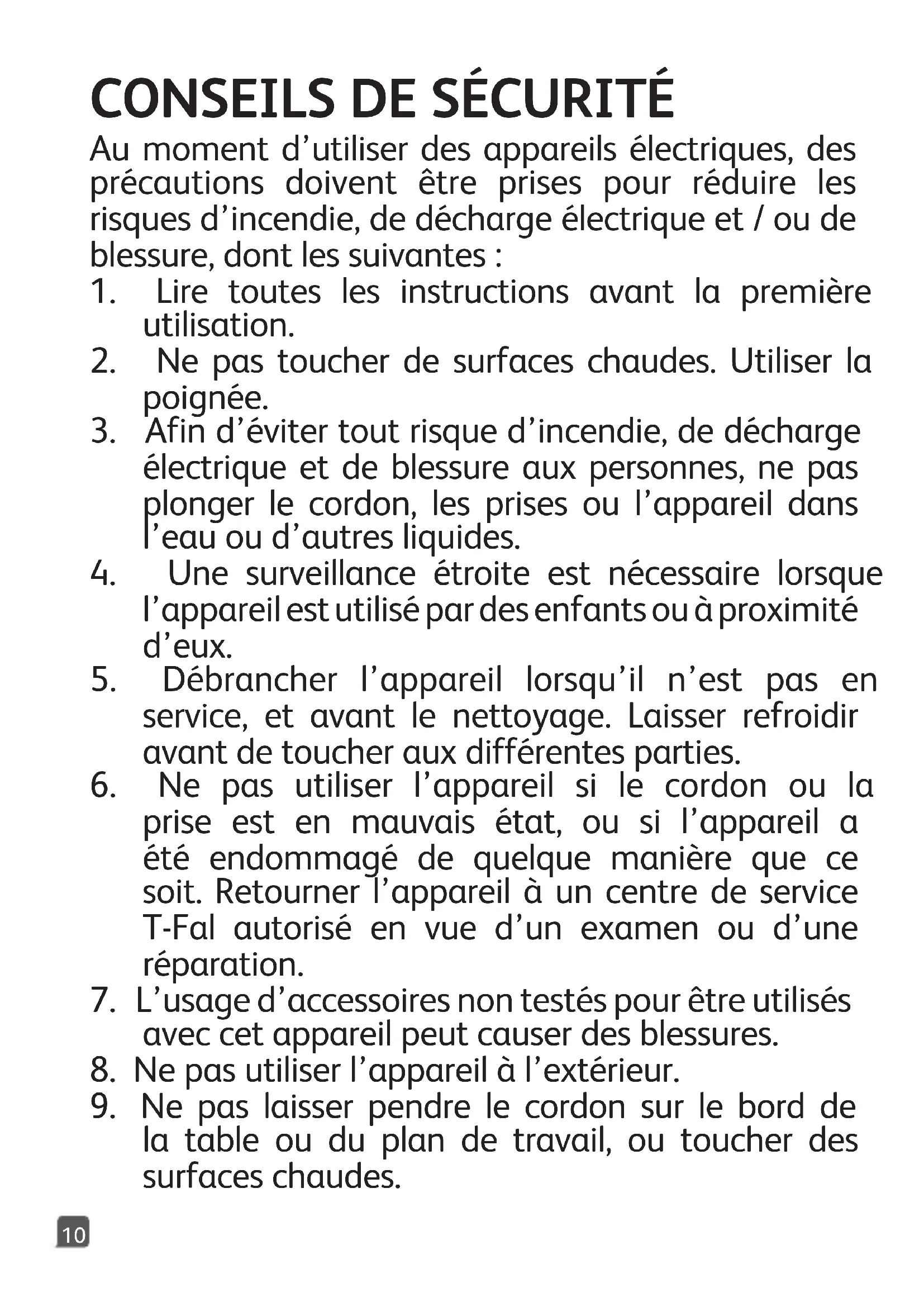9. Ne pas laisser pendre le cordon sur le bord de