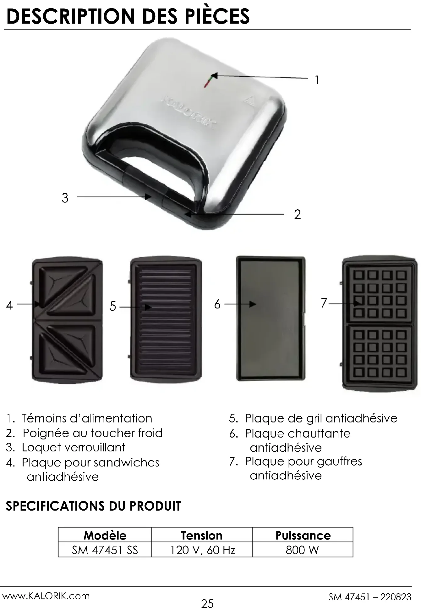 Retrouvez gratuitement la notice de l'appareil SM 47451 SS KALORIK au format PDF.