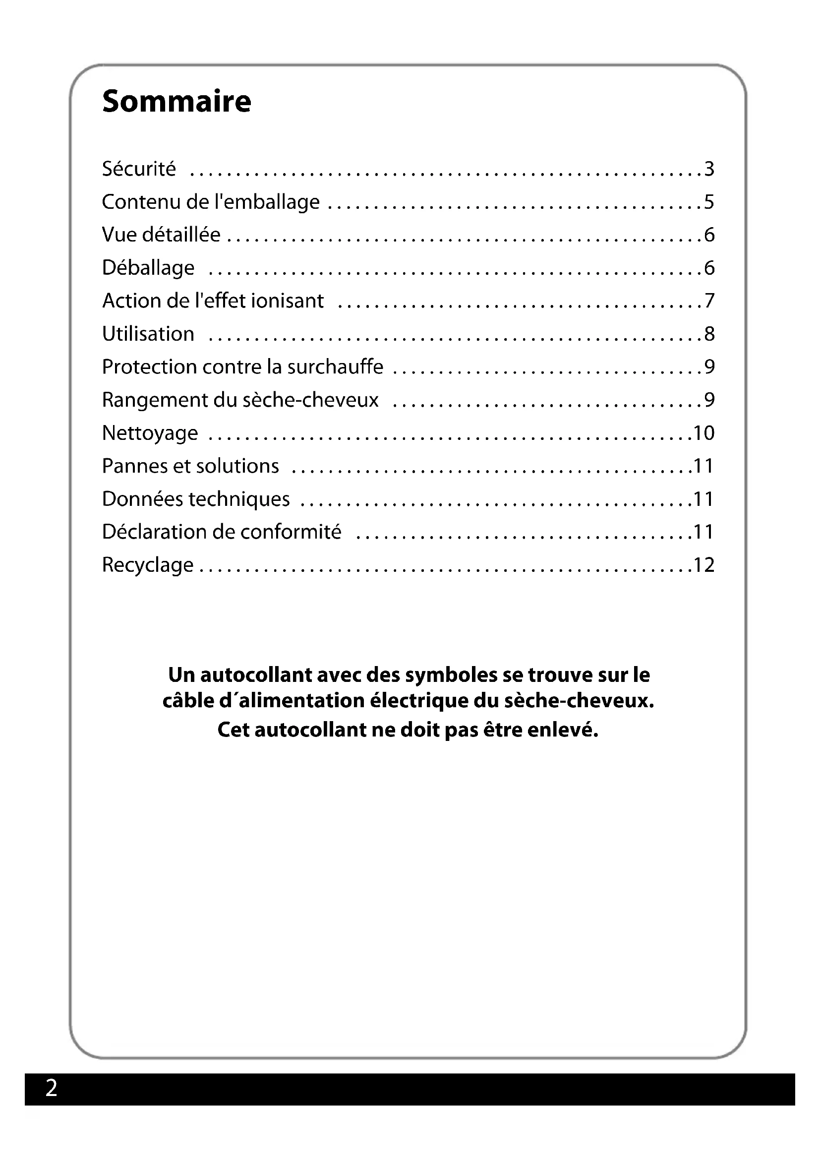 - Rangement du sèche-cheveux p. 9