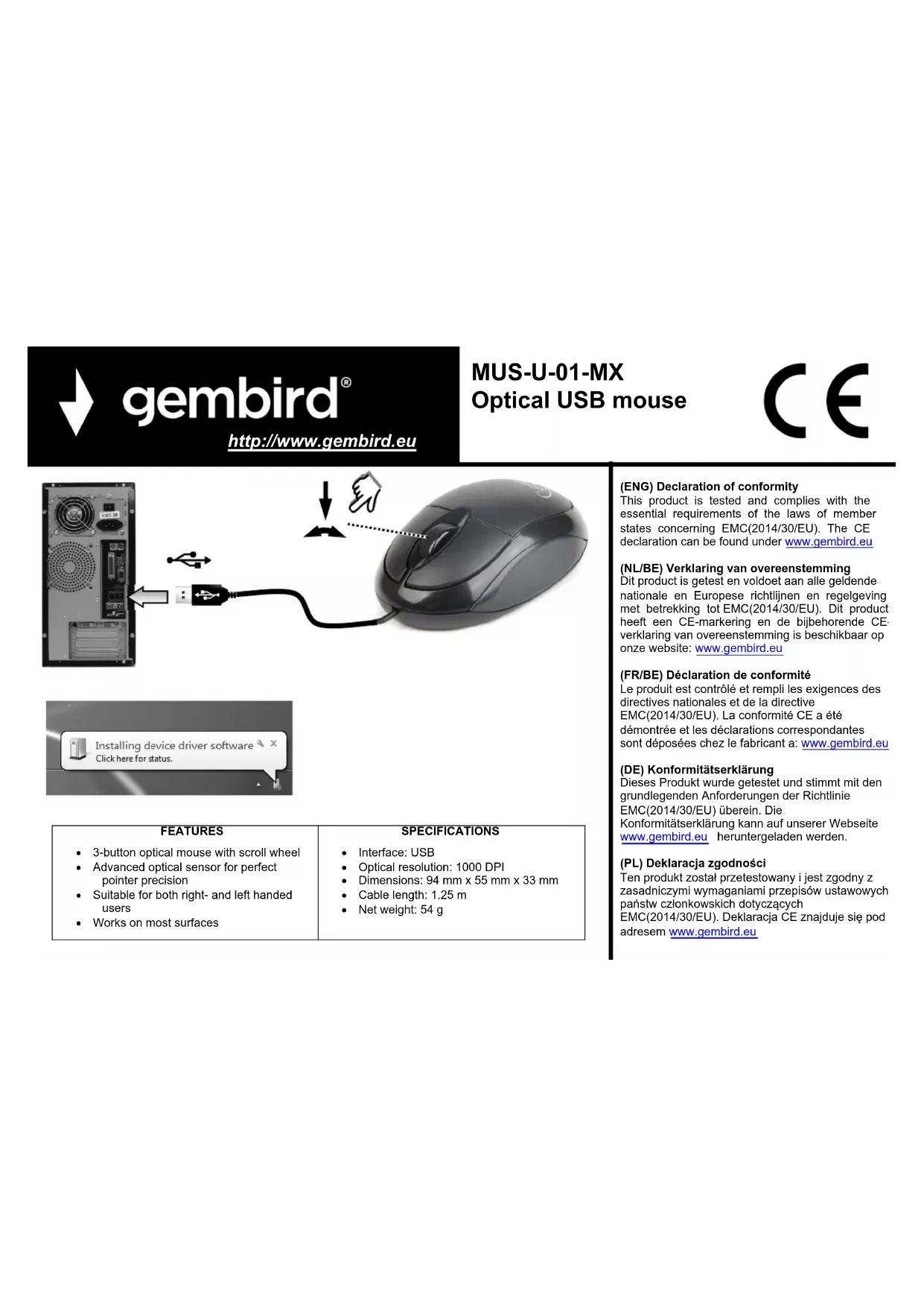 Retrouvez gratuitement la notice de l'appareil MUSU01MX Gembird au format PDF.