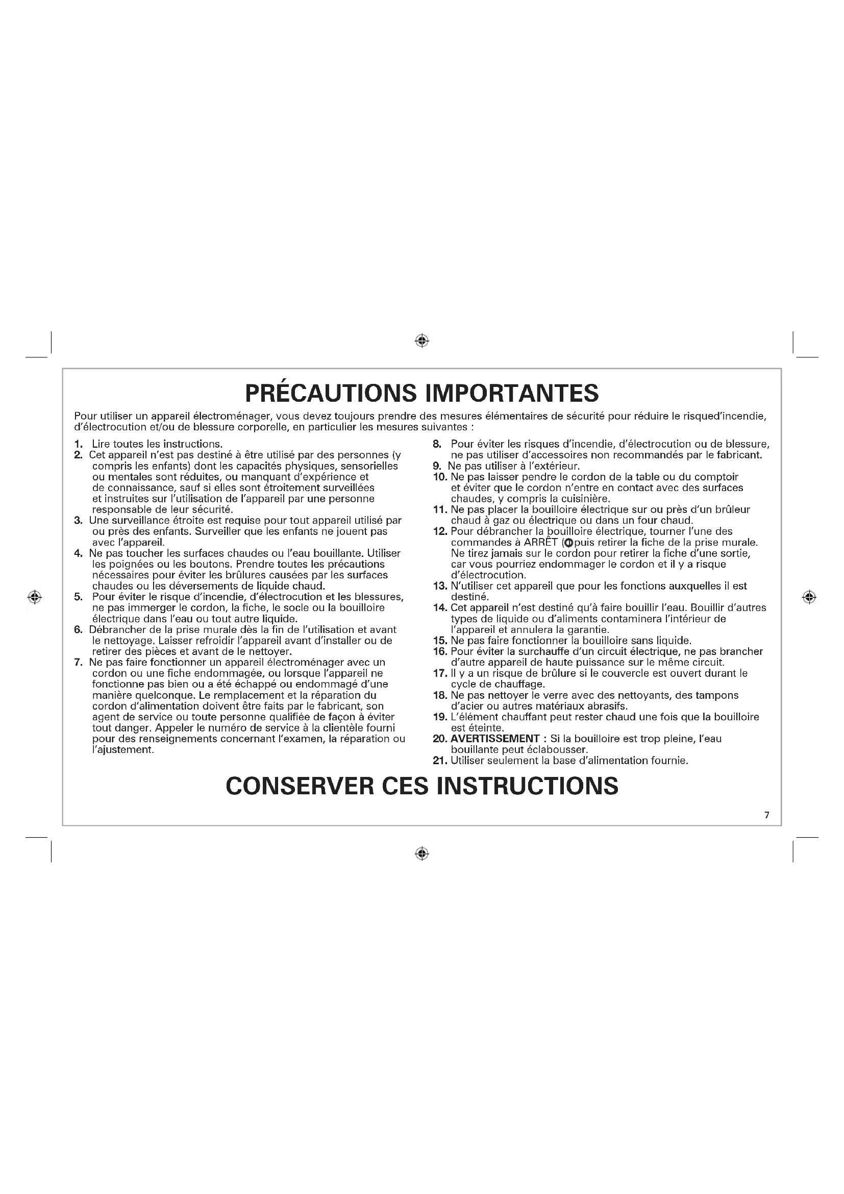 20. AVERTISSEMENT : Si la bouilloire est trop pleine, l’eau
