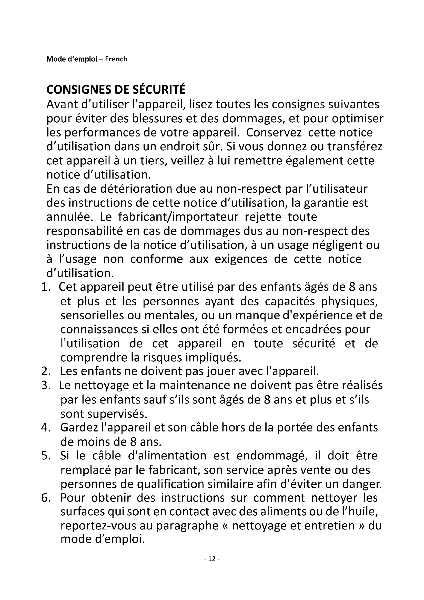 surfaces qui sont en contact avec des aliments ou de l’huile, reportez-vous au paragraphe « nettoyage et entretien » du mode d’emploi.- 13 -