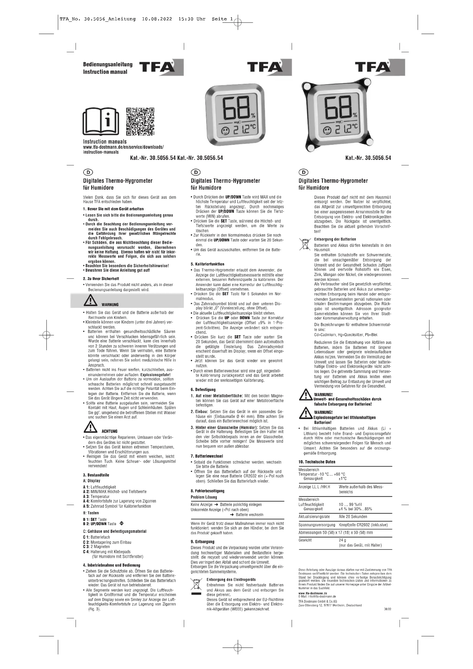Retrouvez gratuitement la notice de l'appareil 30.5056.54 TFA au format PDF.