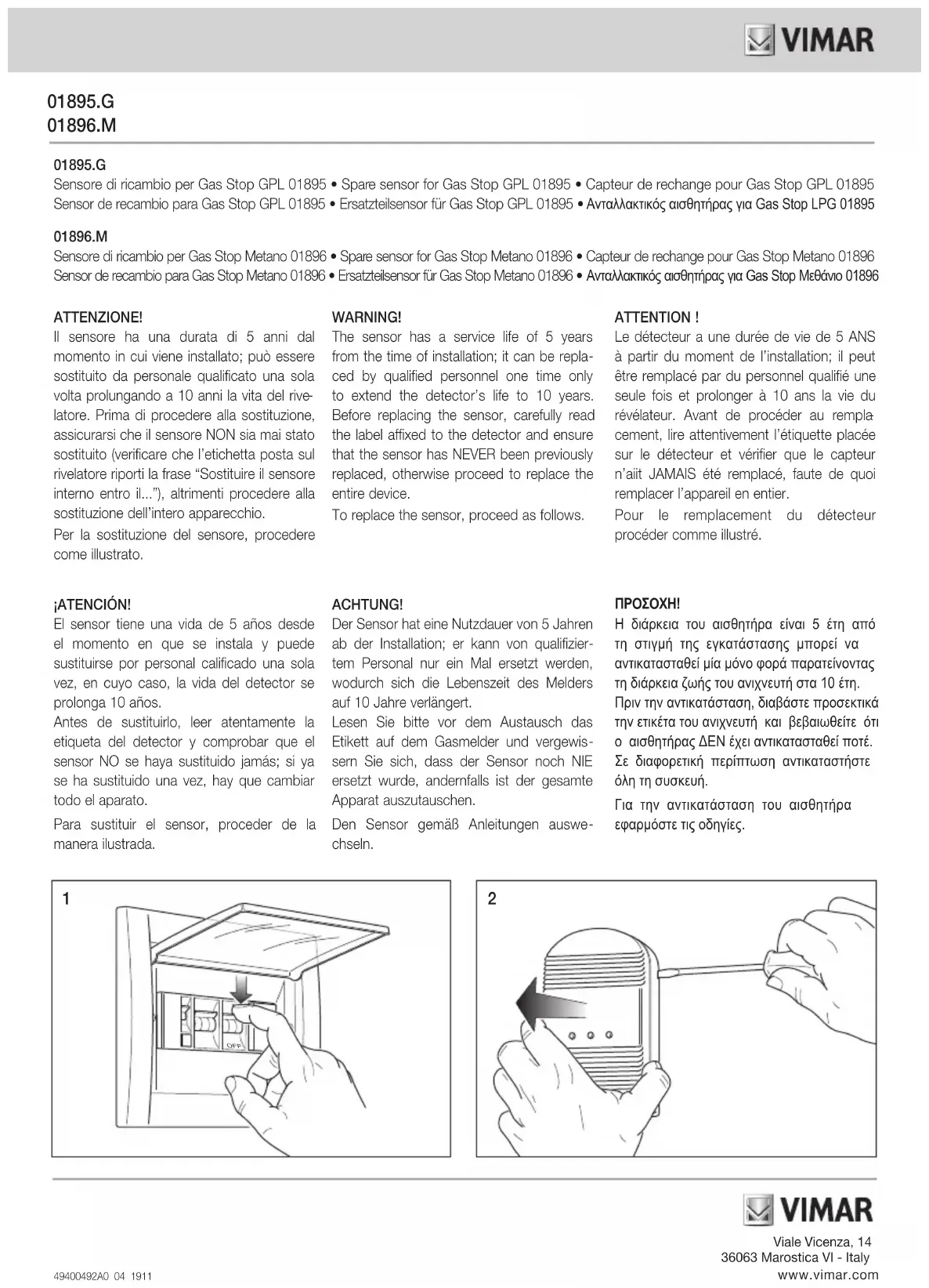 01895.G - Détecteur Vimar - Notice d'utilisation et mode d'emploi gratuit