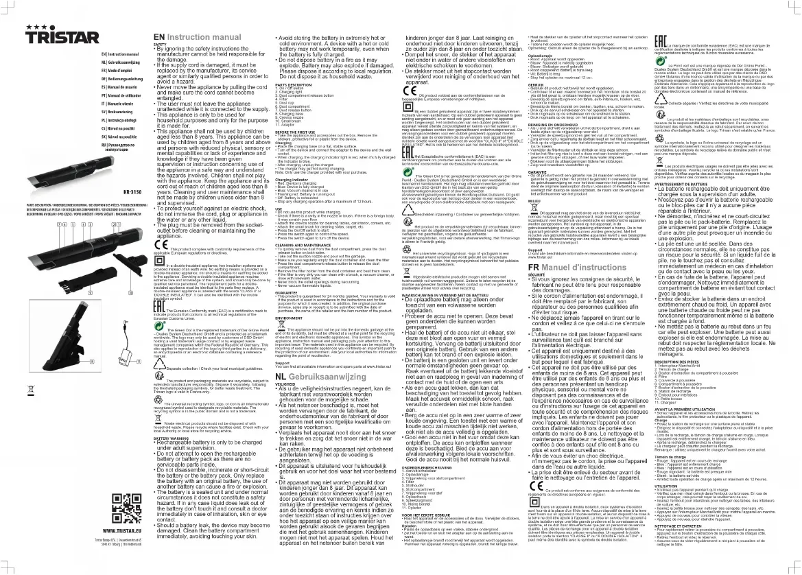 KR3150 - Aspirateur TRISTAR - Notice d'utilisation et mode d'emploi gratuit
