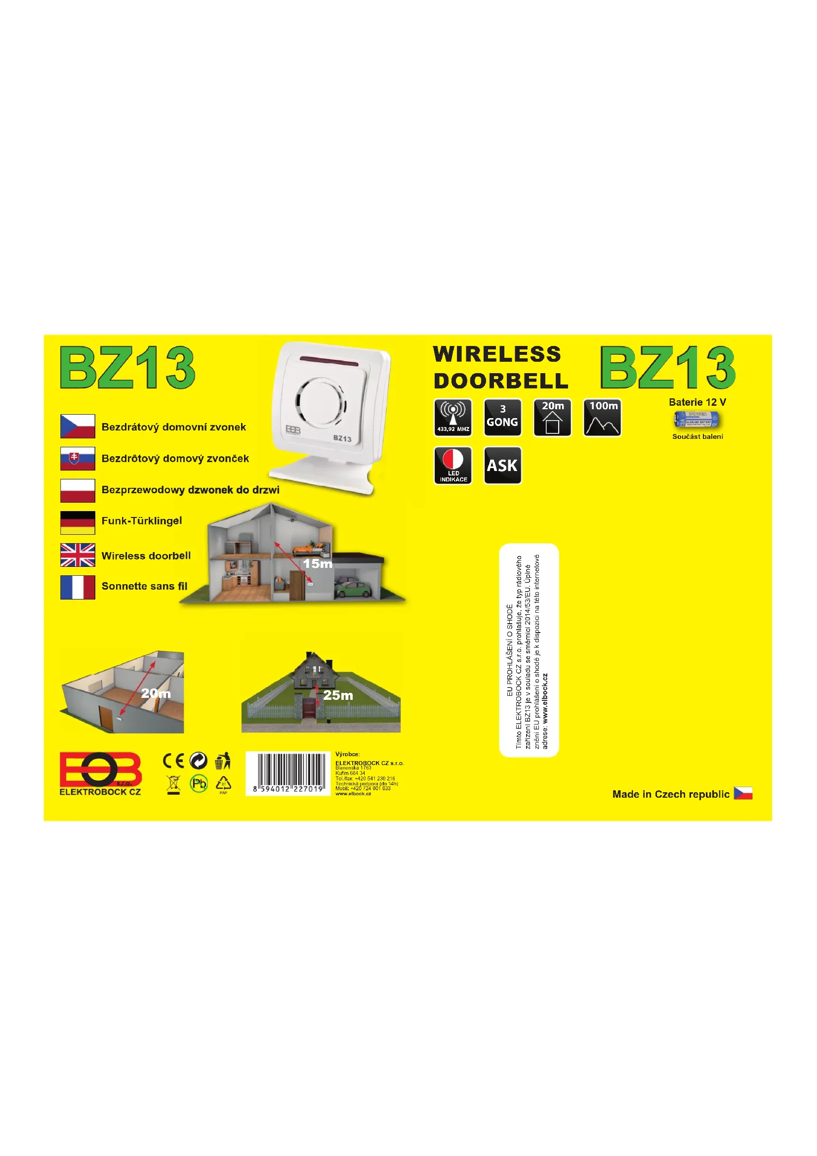 BZ13 - Sonnette de portes Elektrobock - Notice d'utilisation et mode d'emploi gratuit