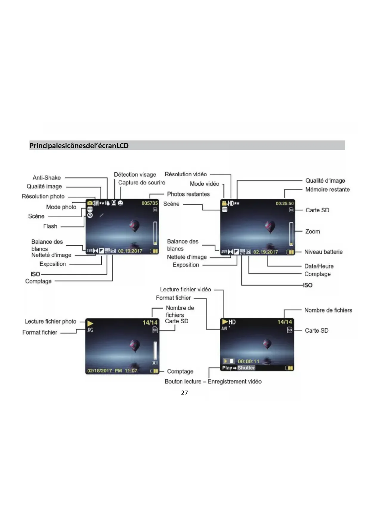 Licône correspondant à lexposion sachera ensuite sur lcran LD. ISO l est prfrable dacer ce paramtre si la luminosit de la prise de ue esaible et elle ne permet pas lulisaon du Flash.