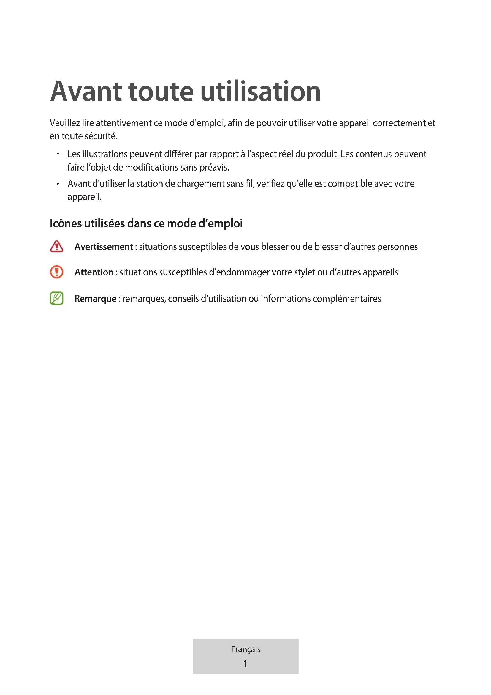 Avant d'utiliser la station de chargement sans fil, vérifiez qu'elle est compatible avec votre appareil. Icônes utilisées dans ce mode d’emploi
