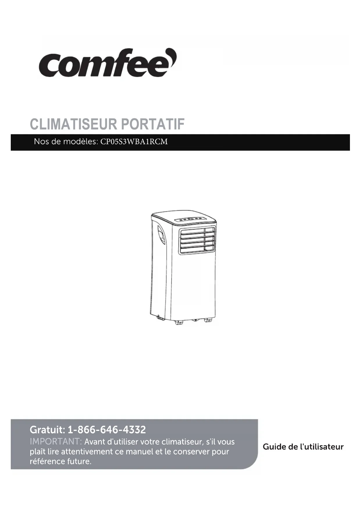 Air Conditioner Limited WarrantyCLIMATISEUR PORTATIF Guide de l'utilisateur Gratuit: 1-866-646-4332 IMPORTANT: Avant d'utiliser votre climatiseur, s'il vous plaît lire attentivement ce manuel et le conserver pour référence future. Nos de modèles:$148#"3$.2 Précautions de Sécurité