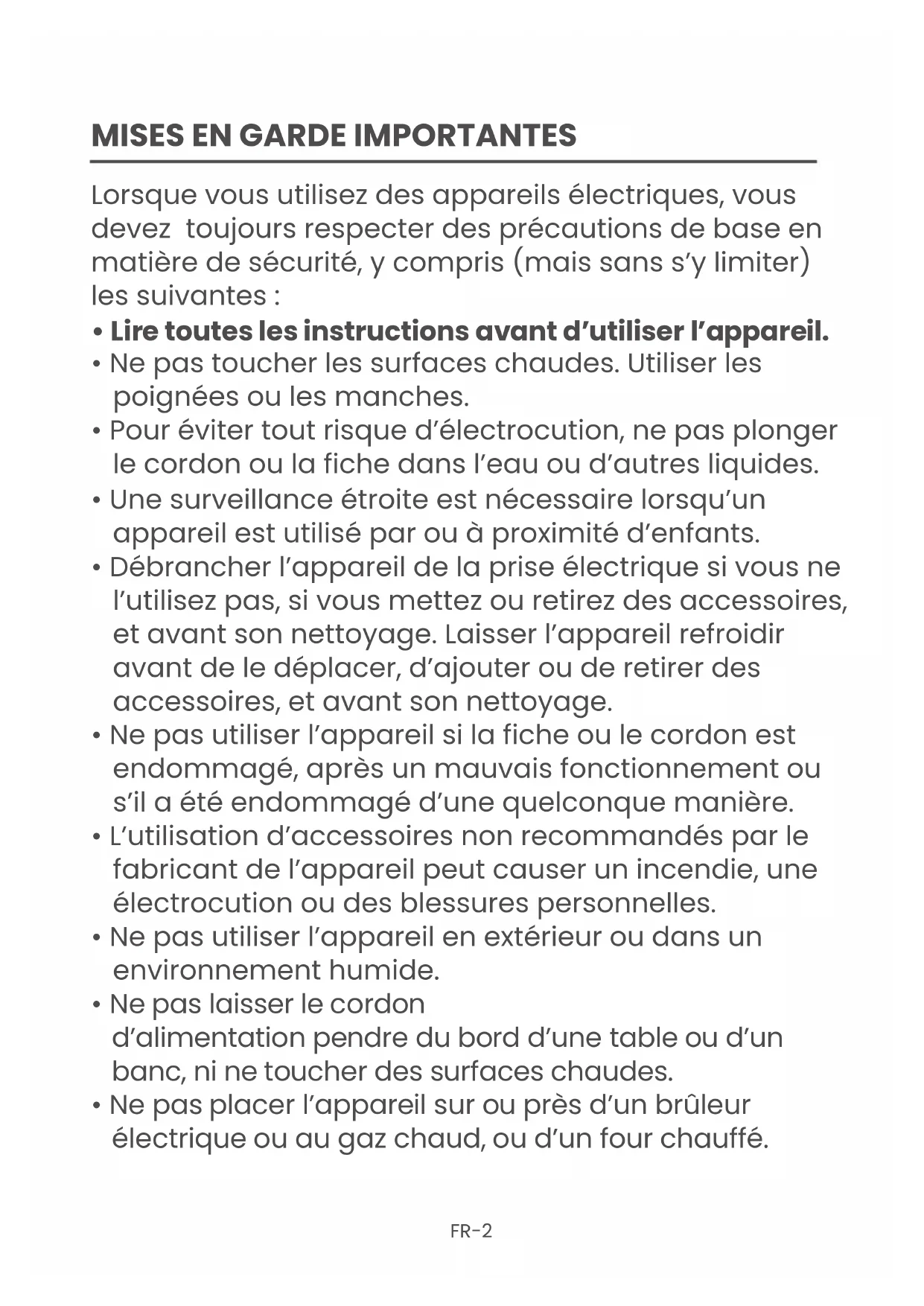 MISES EN GARDE IMPORTANTESFR-3