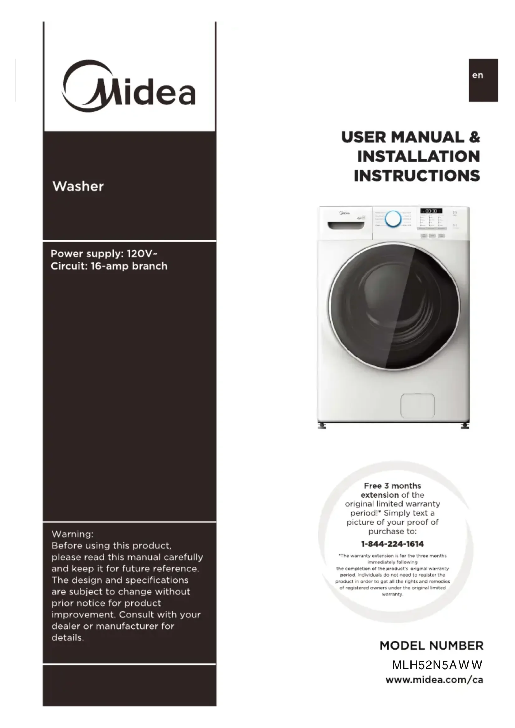 MLH52N5AWW - Machine à laver MIDEA - Notice d'utilisation et mode d'emploi gratuit