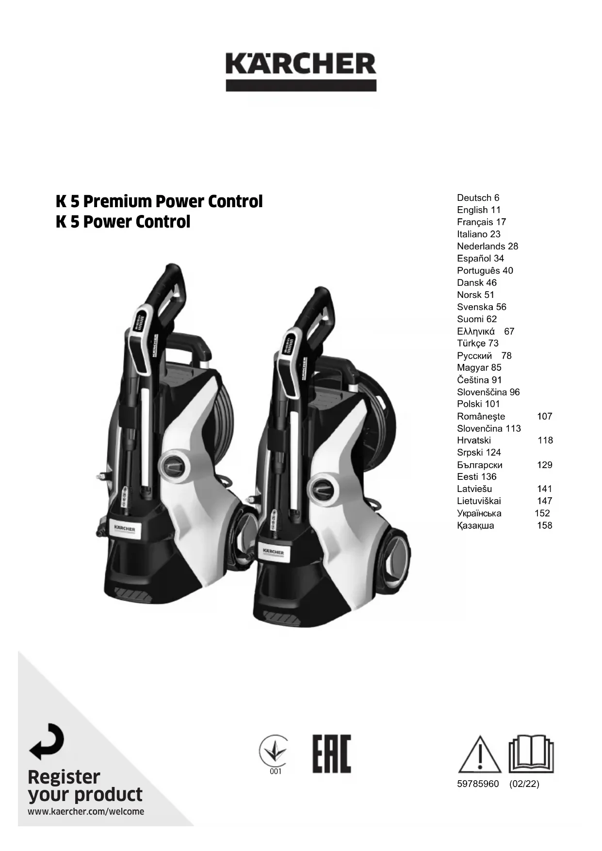 Retrouvez gratuitement la notice de l'appareil K 5 Premium Power Control Home Kärcher au format PDF.