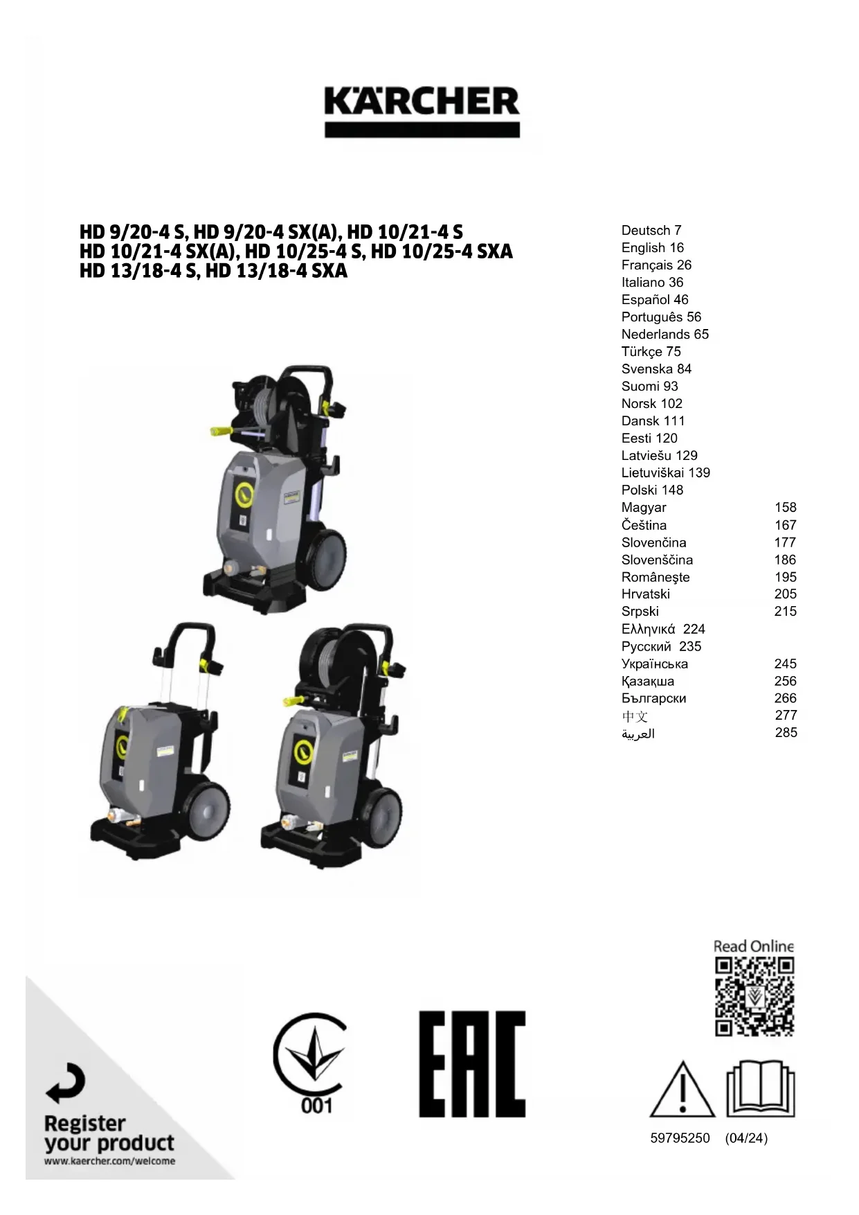 Retrouvez gratuitement la notice de l'appareil HD 10214 SXA Plus Kärcher au format PDF.