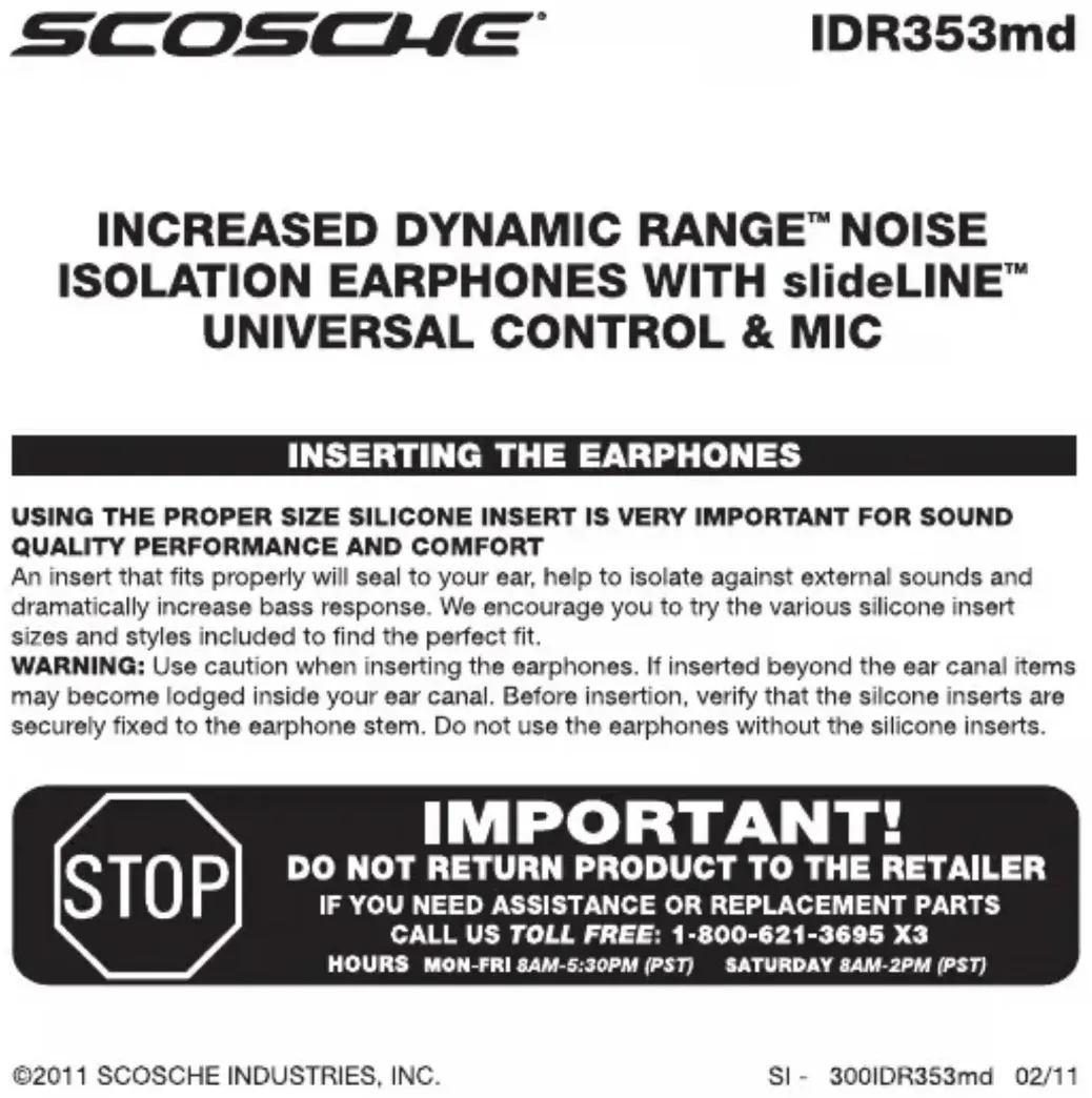 IDR353MD - Bouchon d'oreille Scosche - Notice d'utilisation et mode d'emploi gratuit