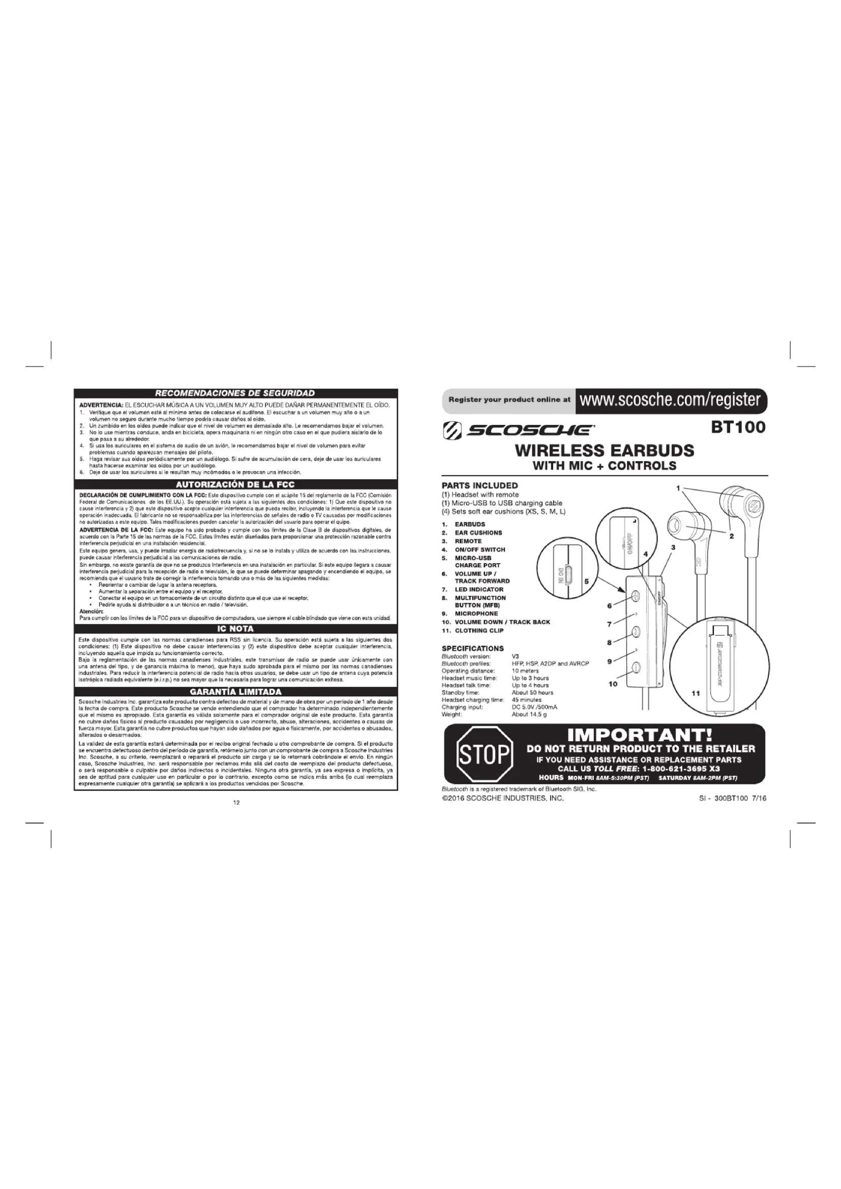 Retrouvez gratuitement la notice de l'appareil BT100WT Scosche au format PDF.